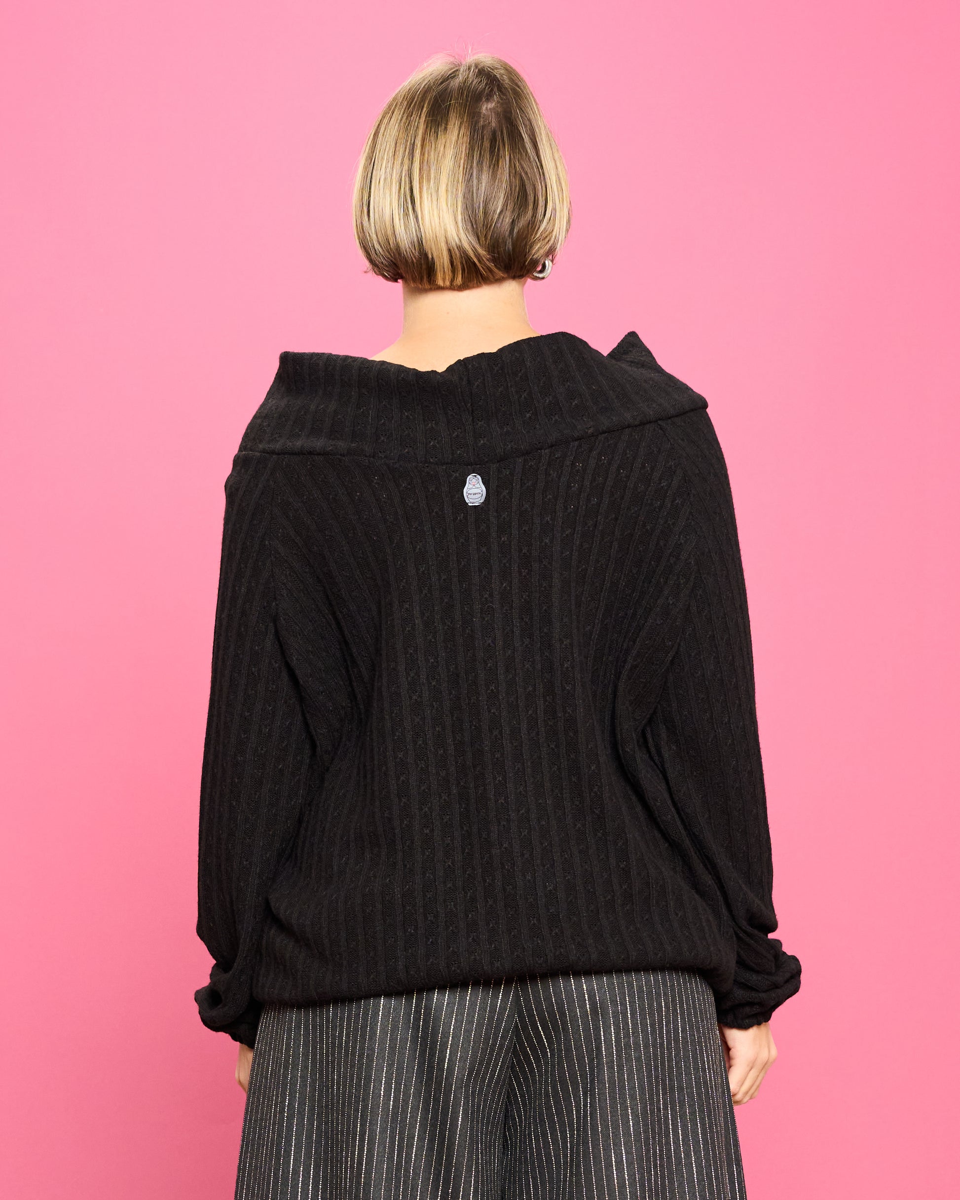 Cable Knit Sweater with Wide Donut Neck