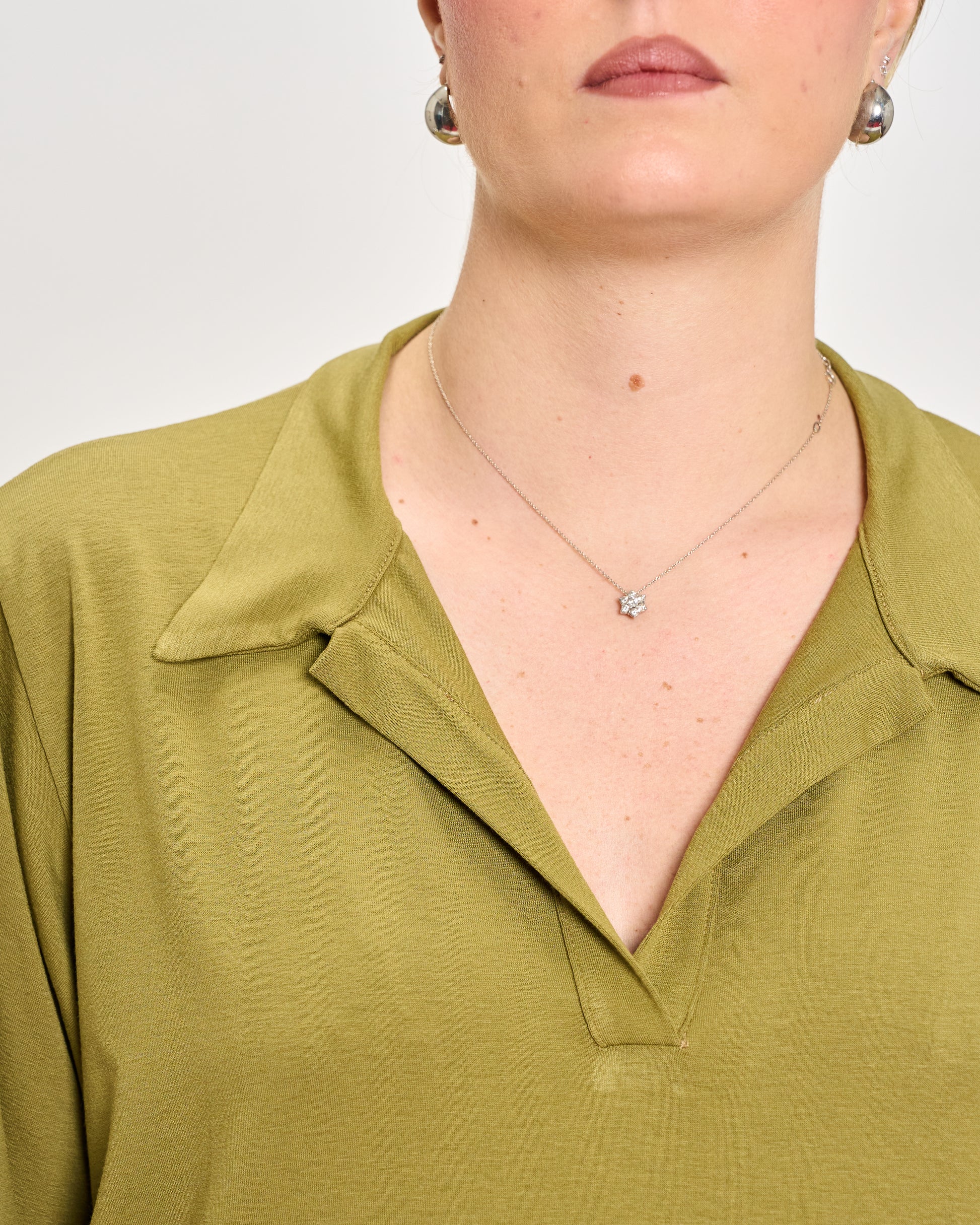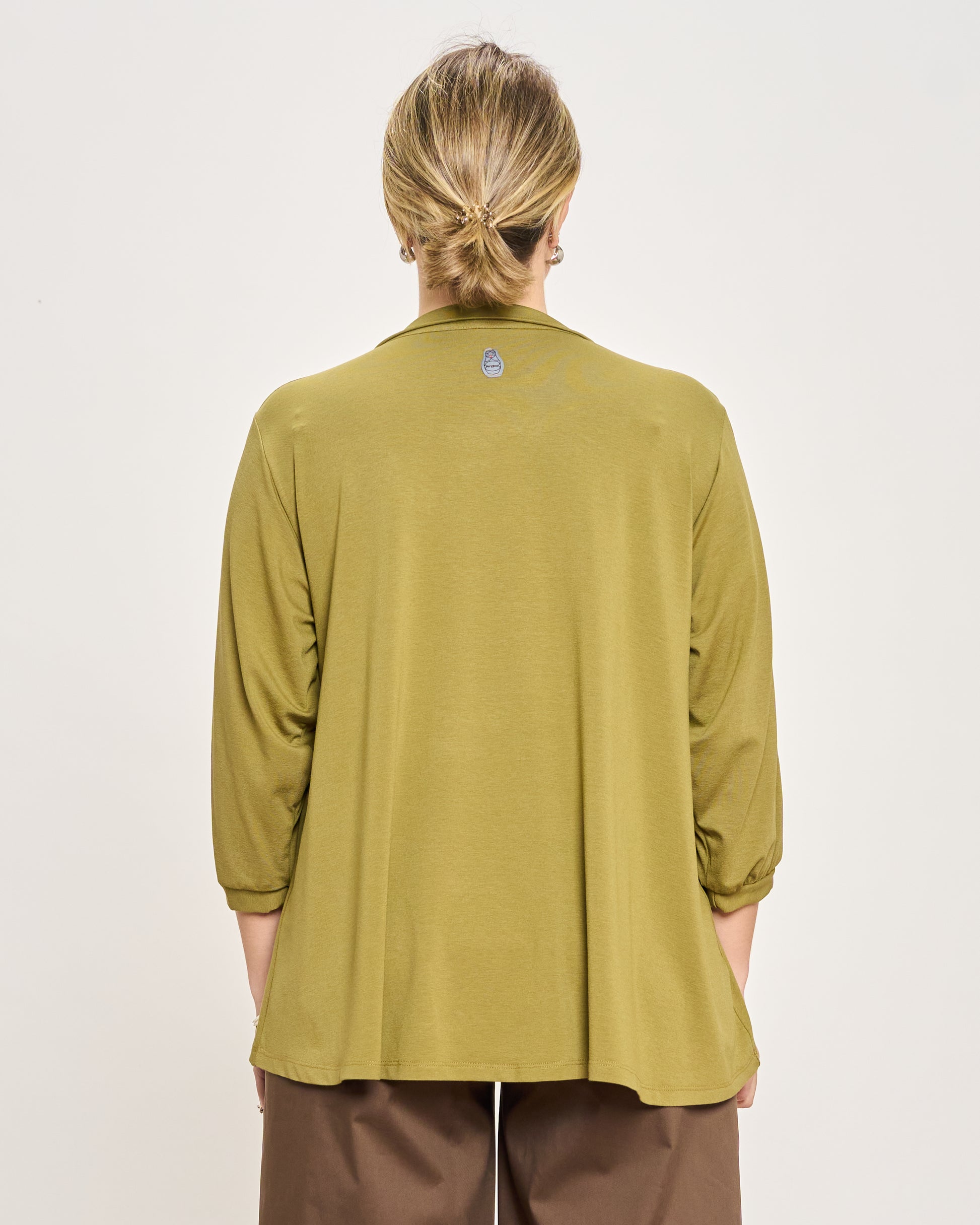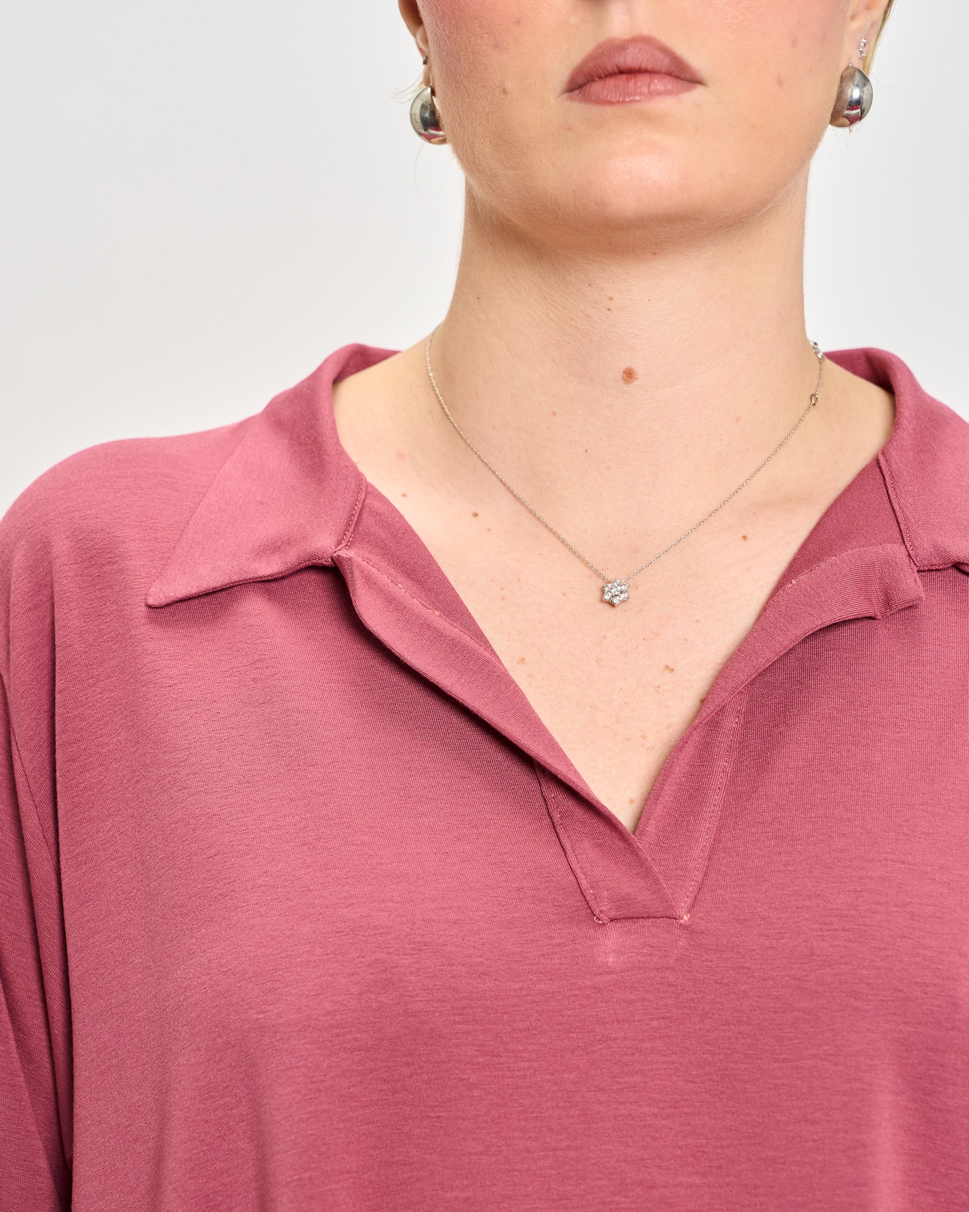 Oversized polo in stretchy viscose jersey with 3/4 sleeves, elasticated cuffs, and hem.