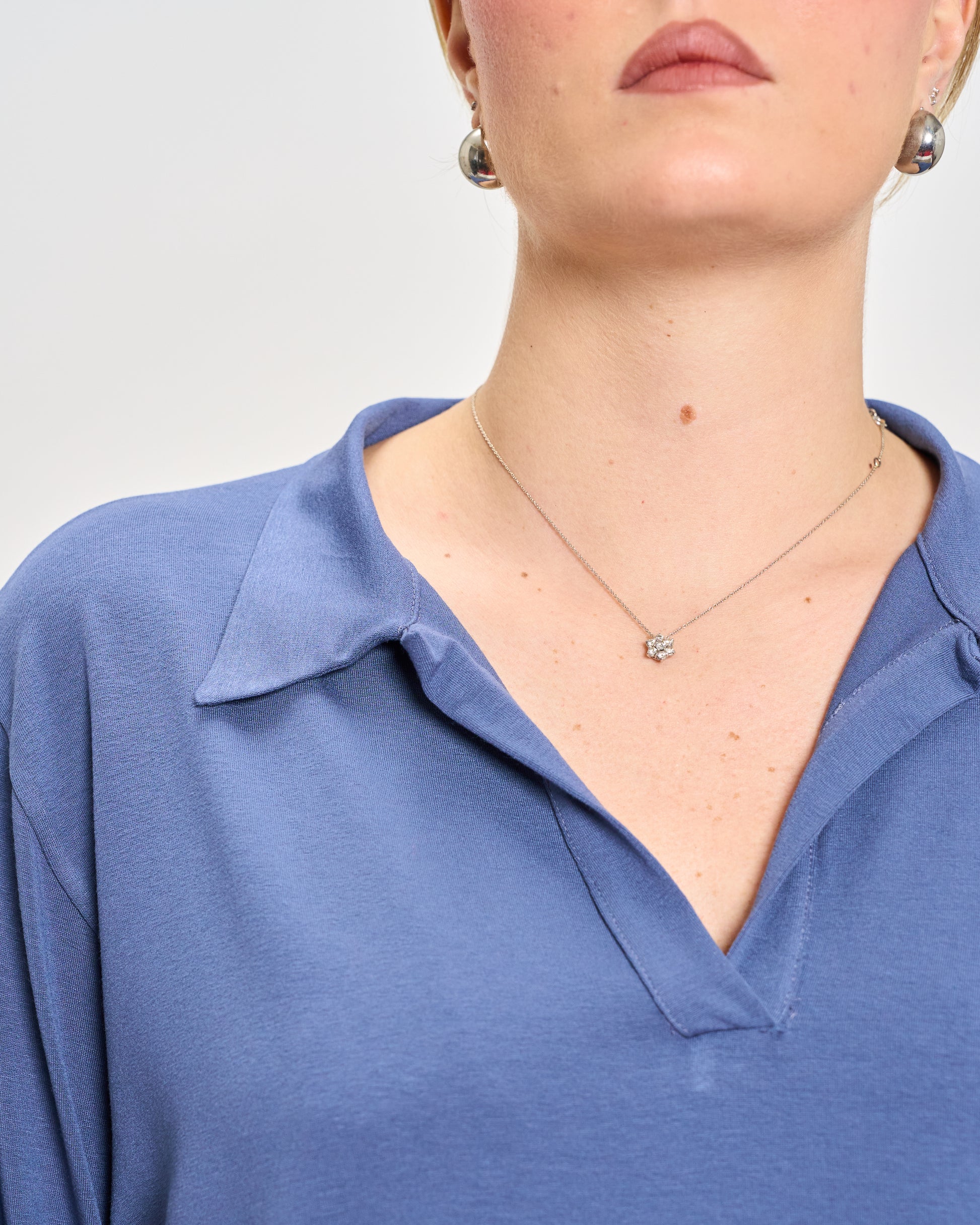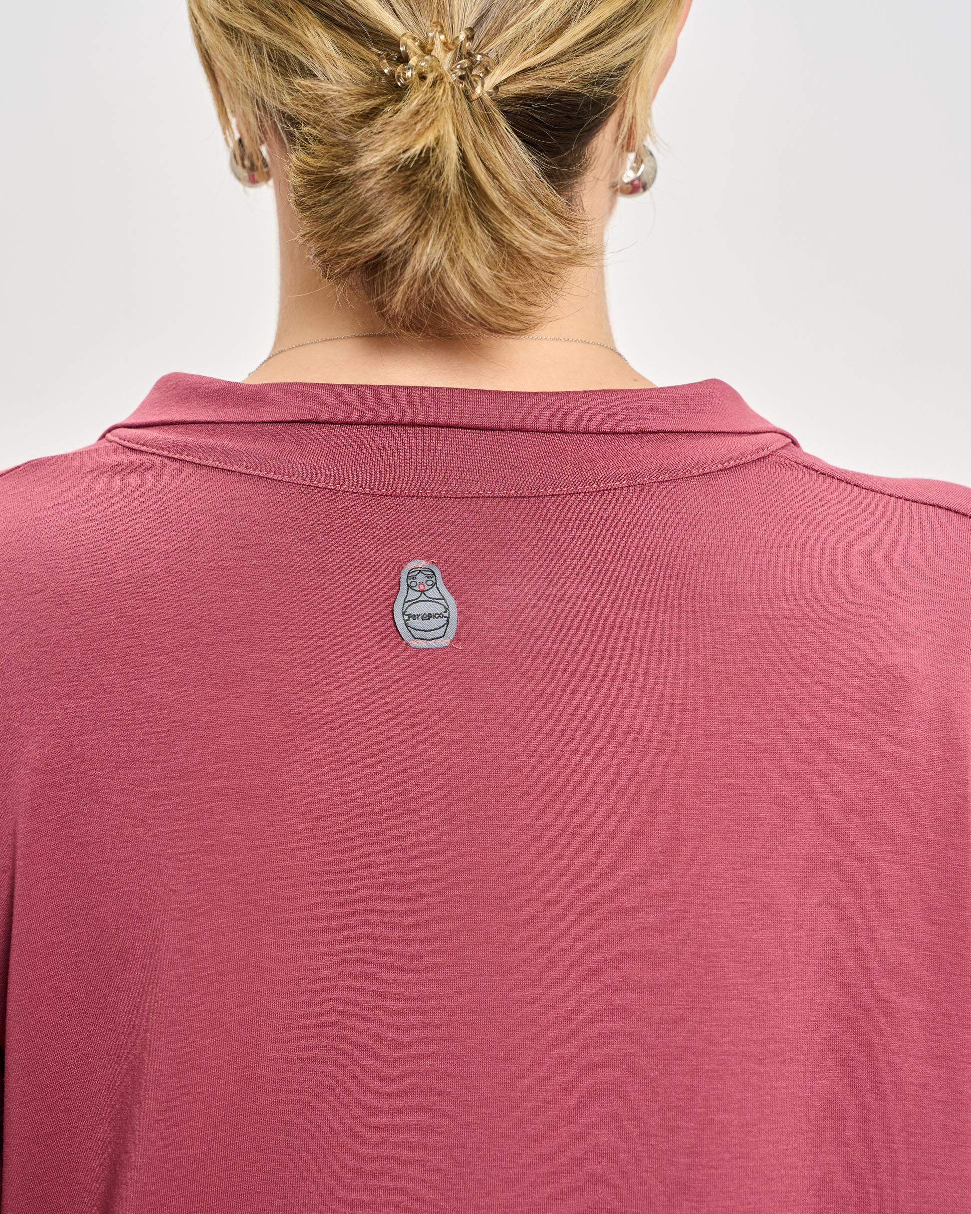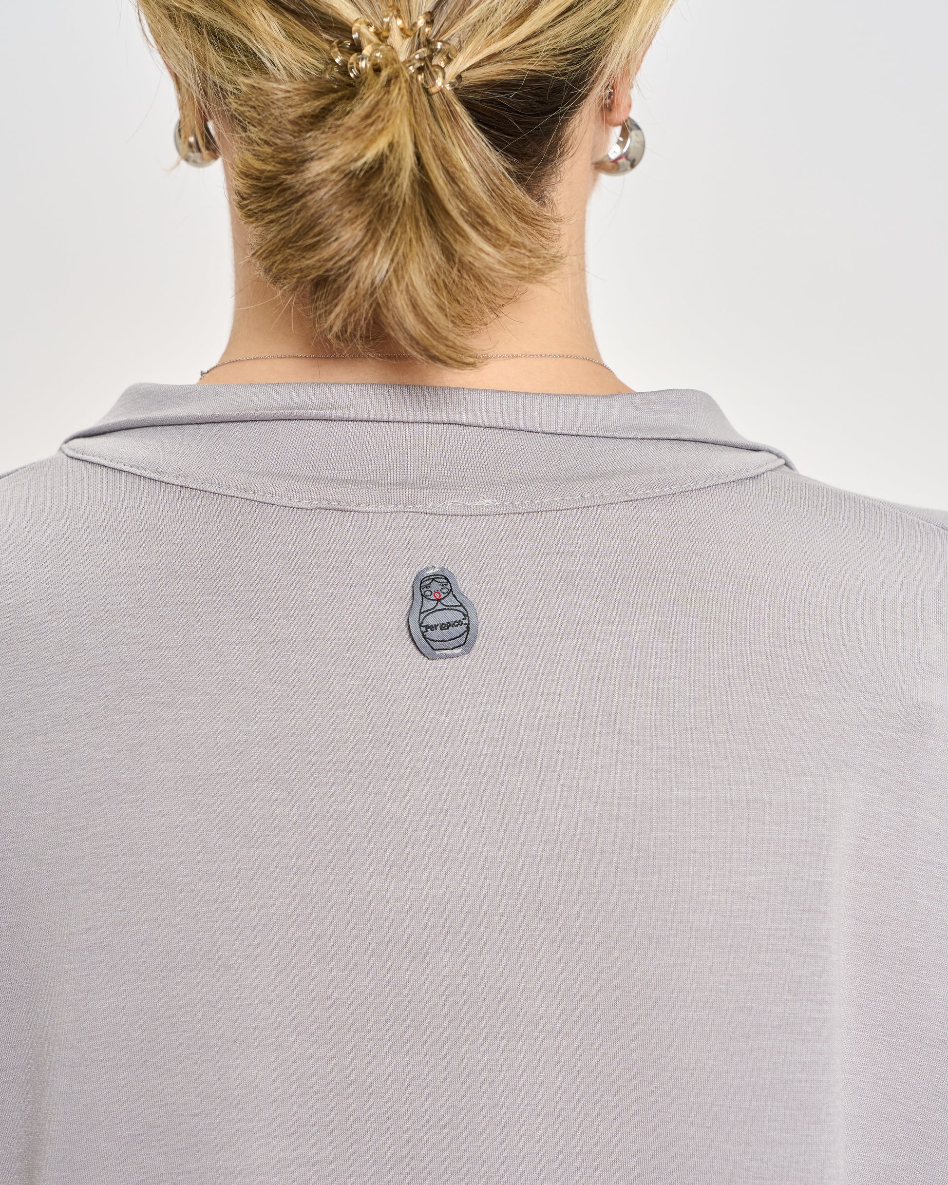 Oversized polo in stretchy viscose jersey with 3/4 sleeves, elasticated cuffs, and hem.