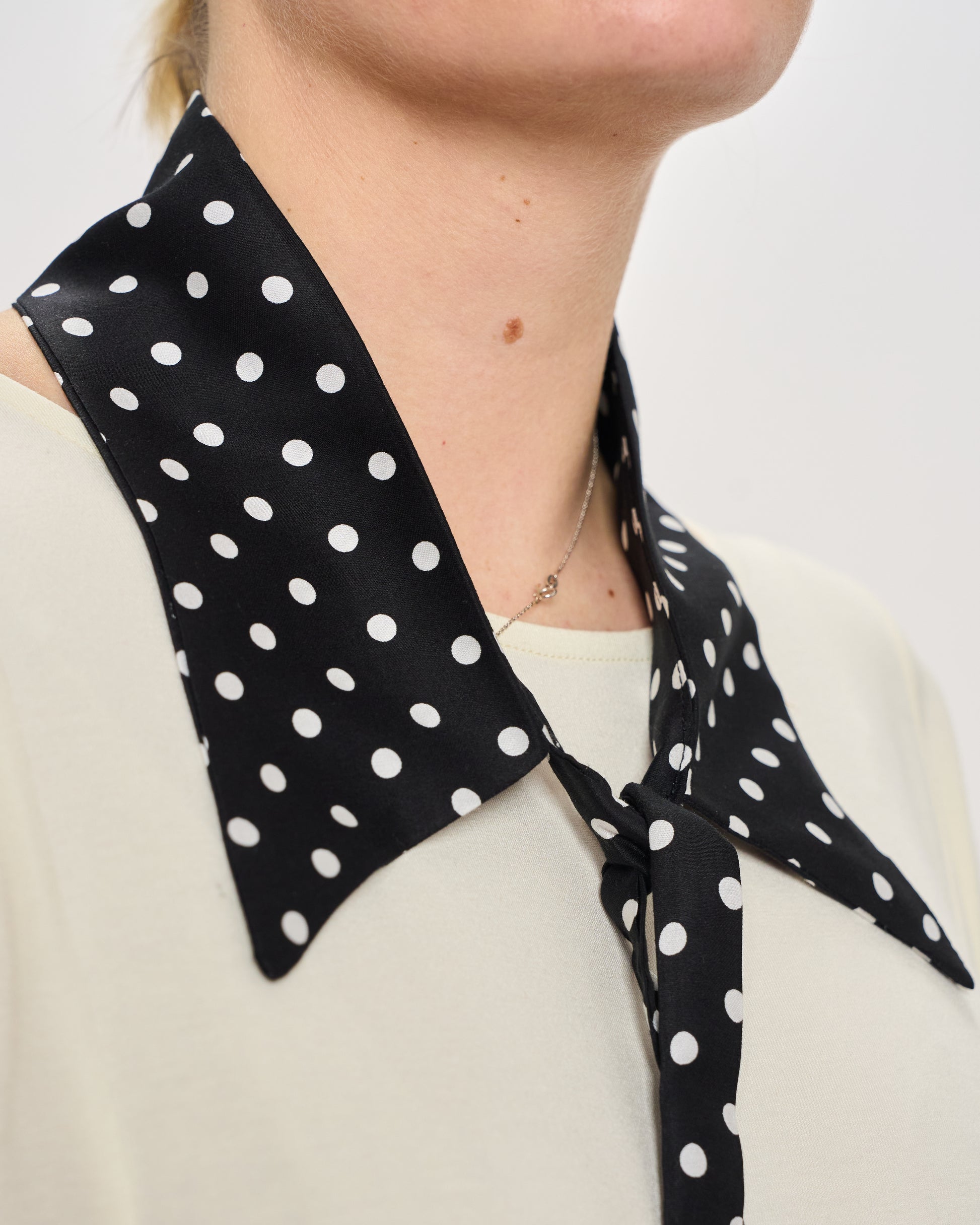 Shirt collar to be tied with a bow on the front in printed viscose or cotton (depending on the pattern).