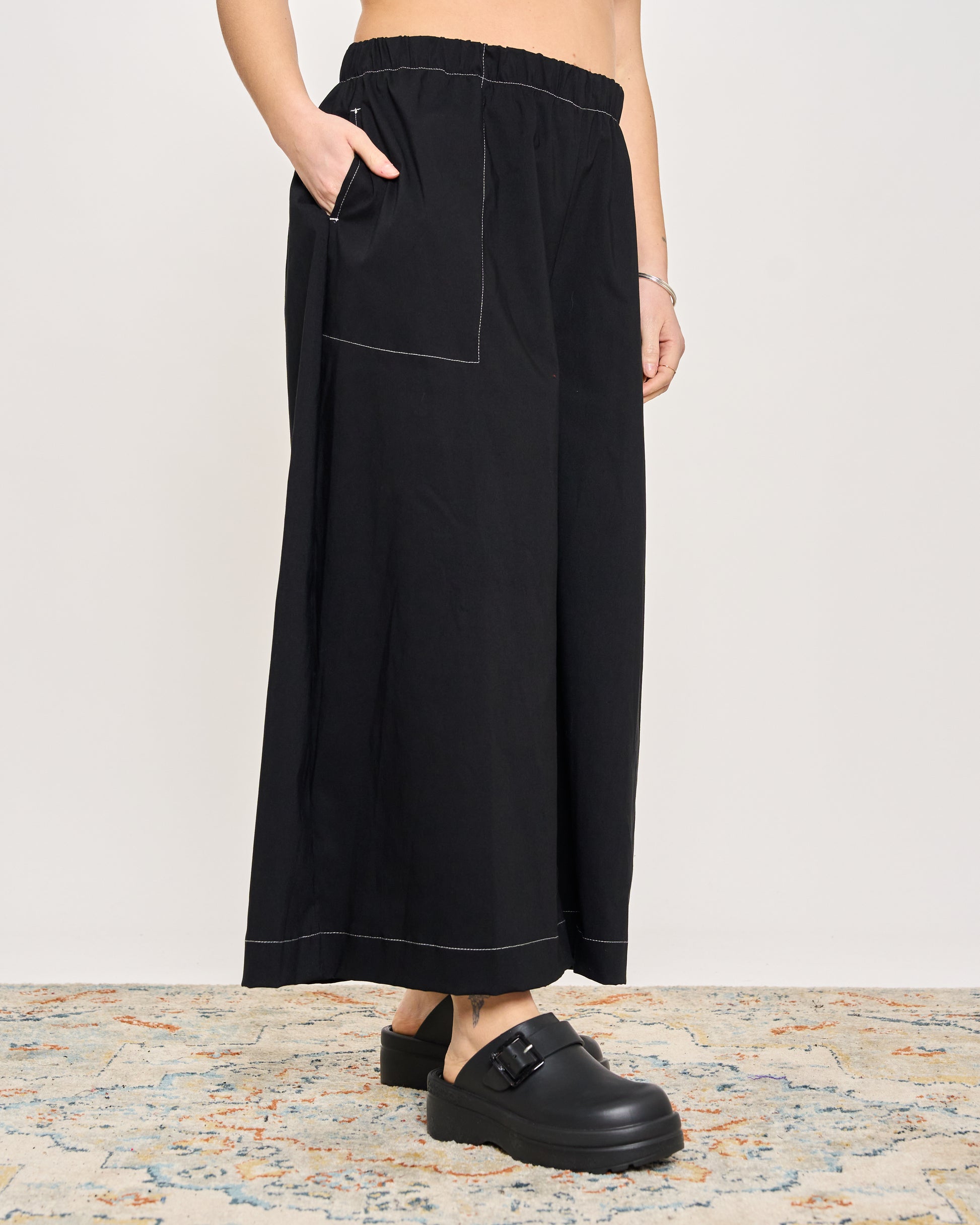 Stretch cotton blend pant skirt with side pockets, visible stitching detail and elasticated waist.