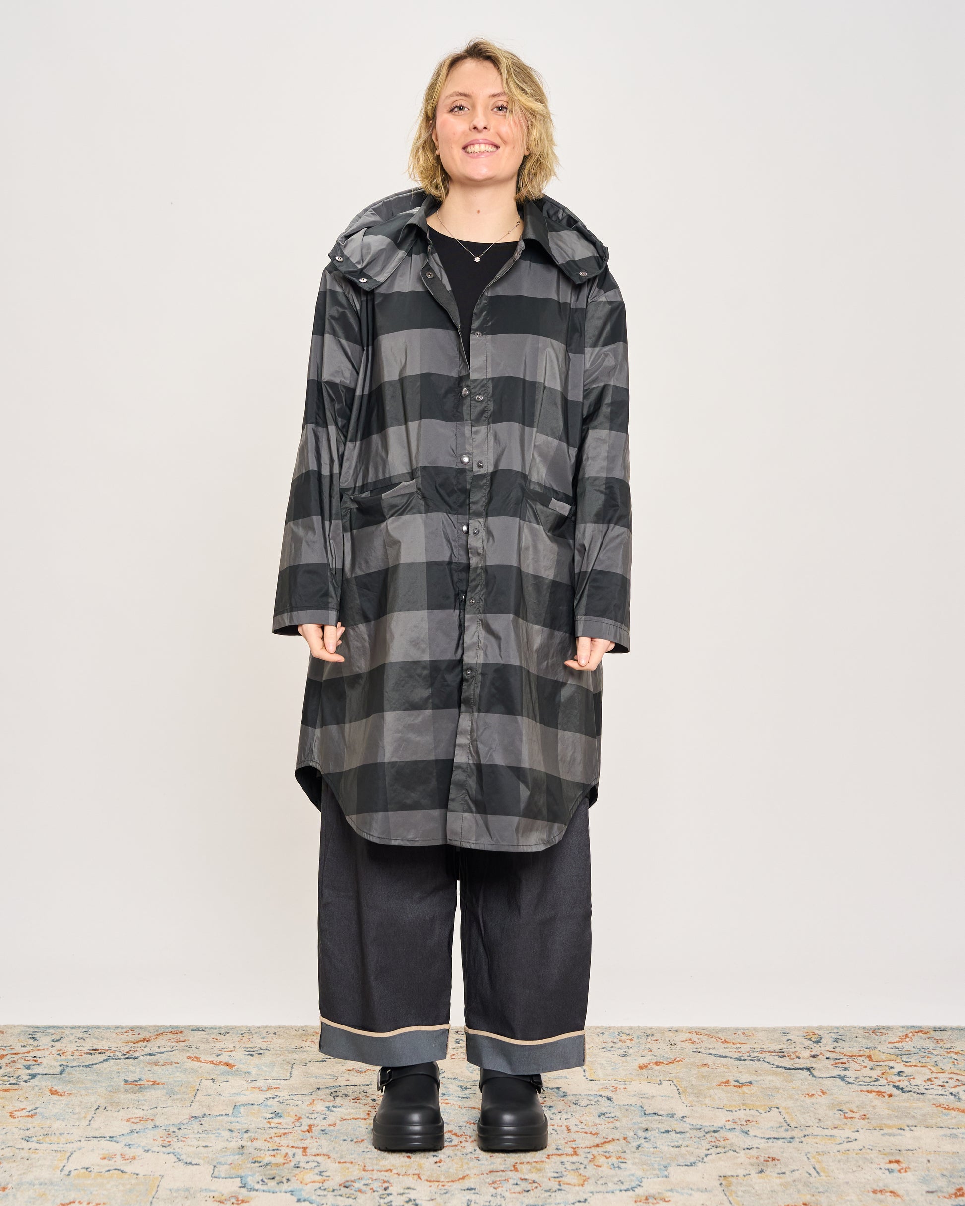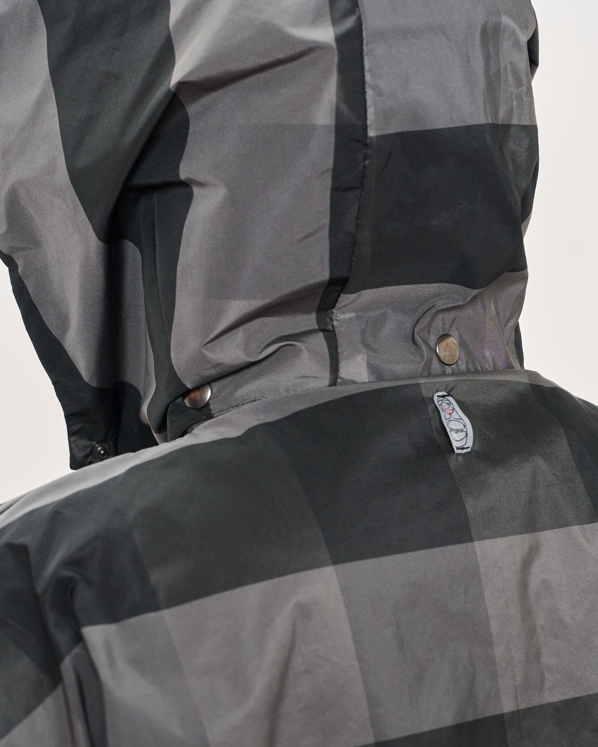 Camicia impermeabile a quadri con colletto a camicia, tasche sul davanti, cappuccio removibile e abbottanura con automatici sul davanti