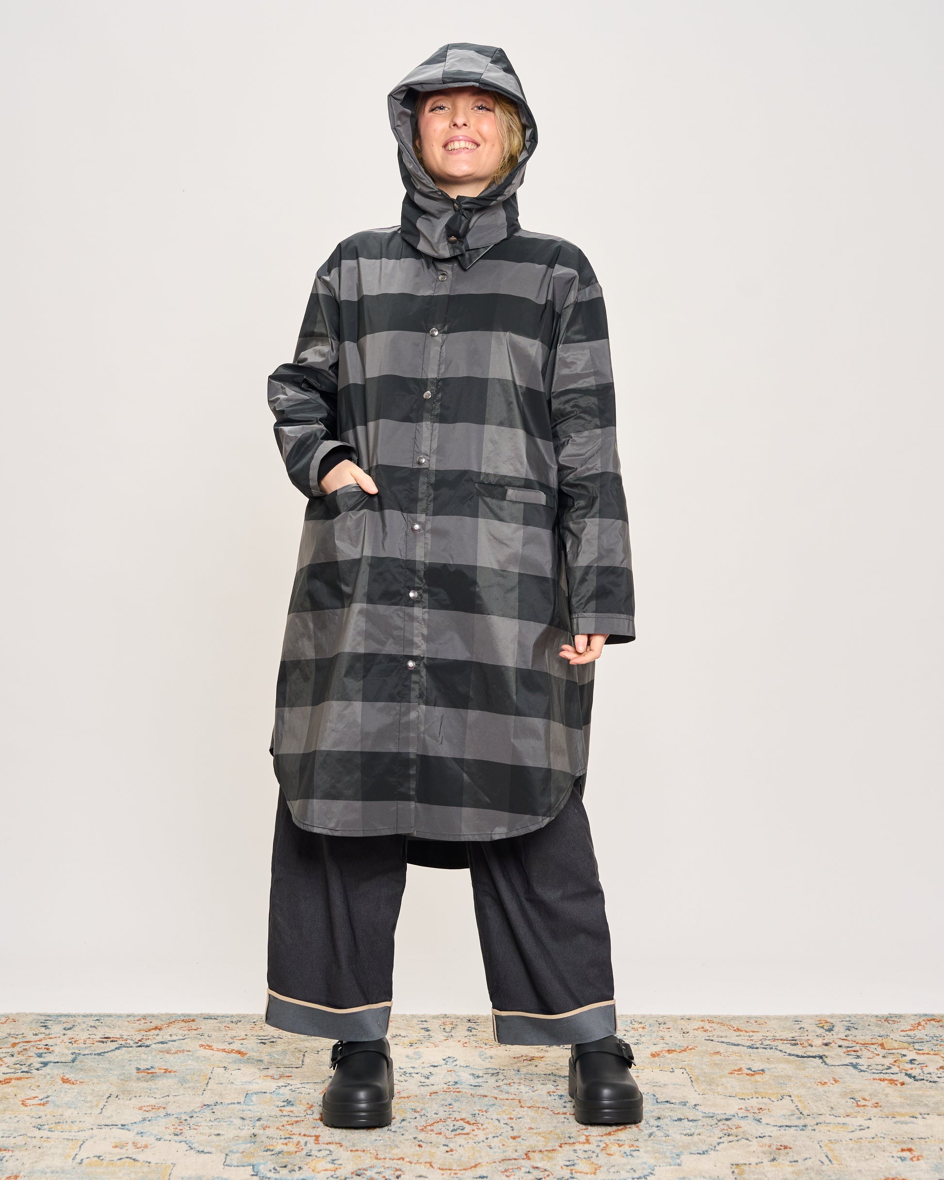 Camicia Impermeabile a Quadri con Cappucccio