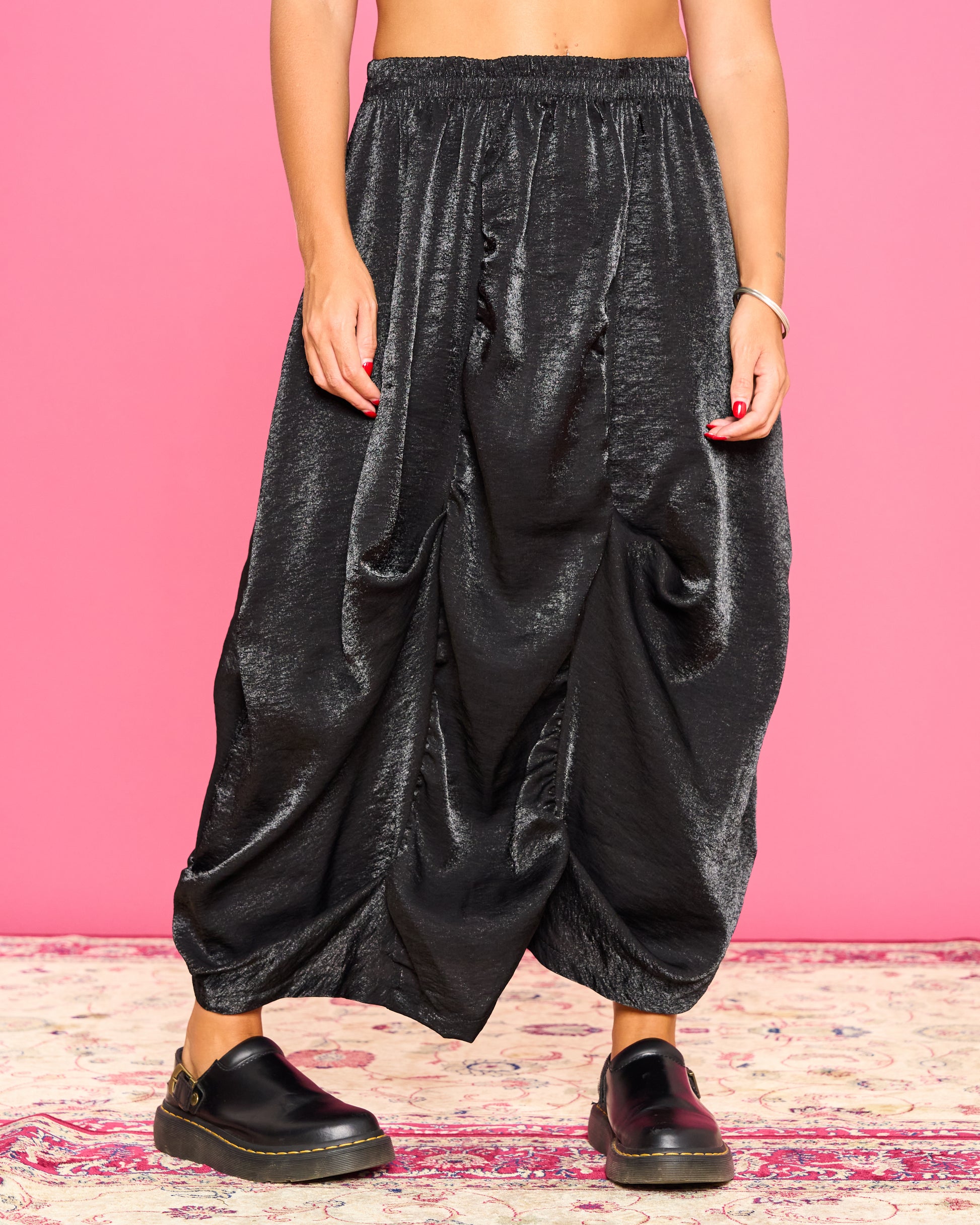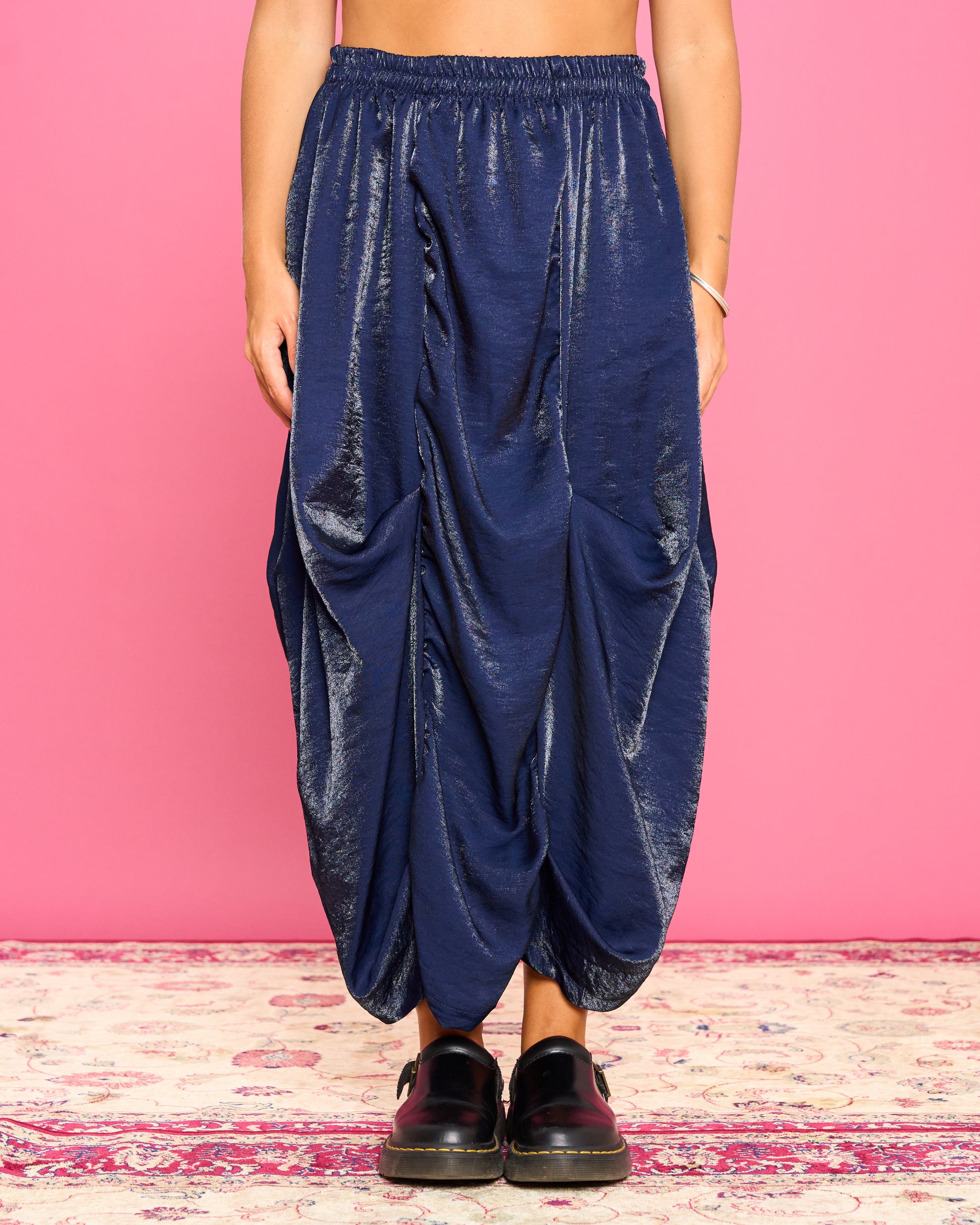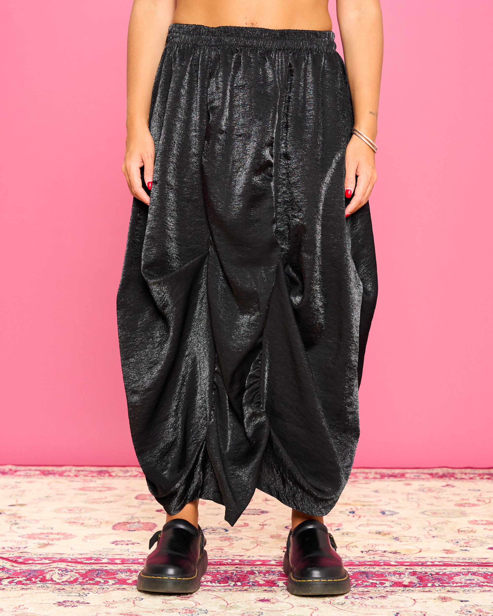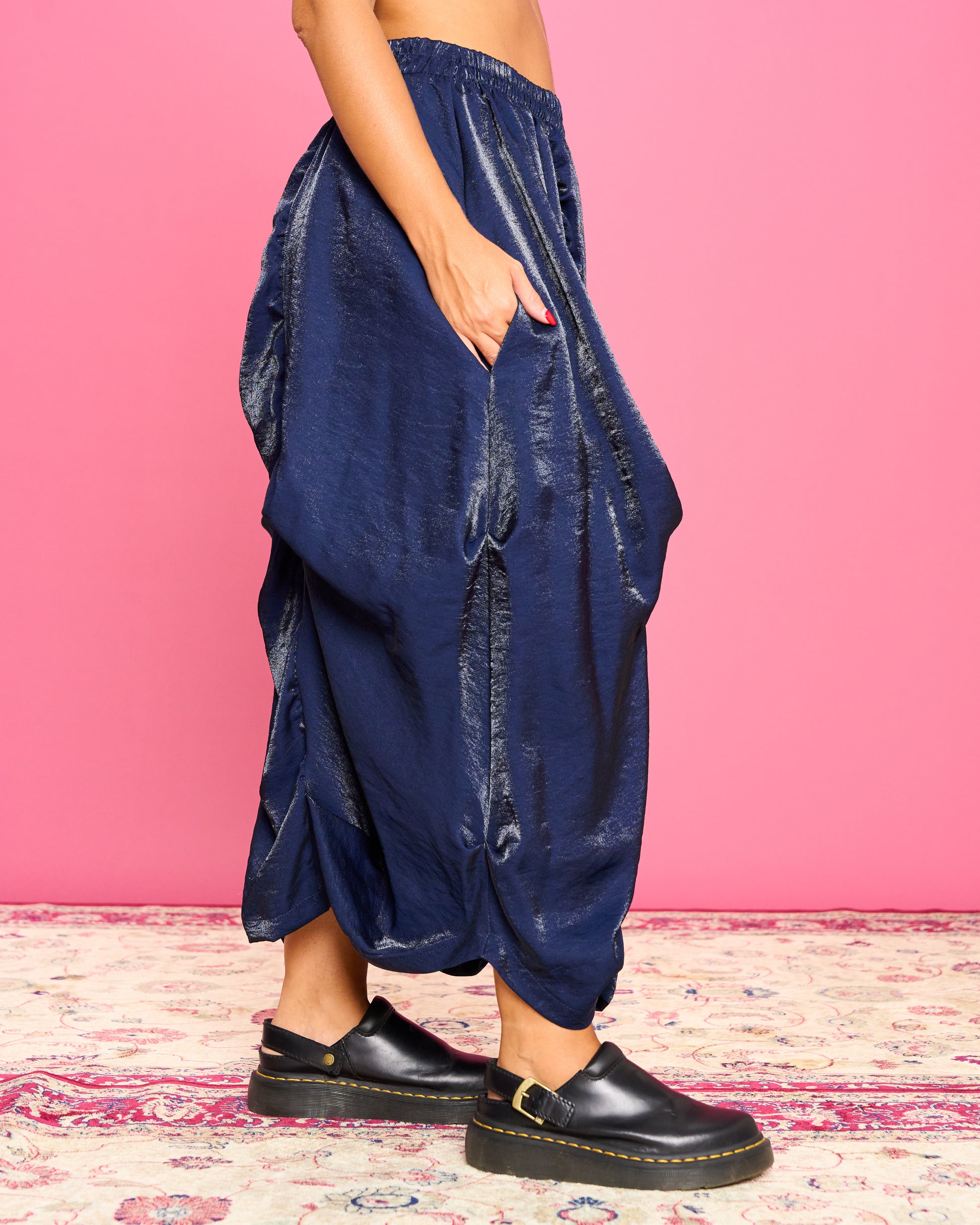 Gonna in tessuto cangiante con elastico in vita, arricciatura sul davanti e sul retro e tasche sui fianchi.