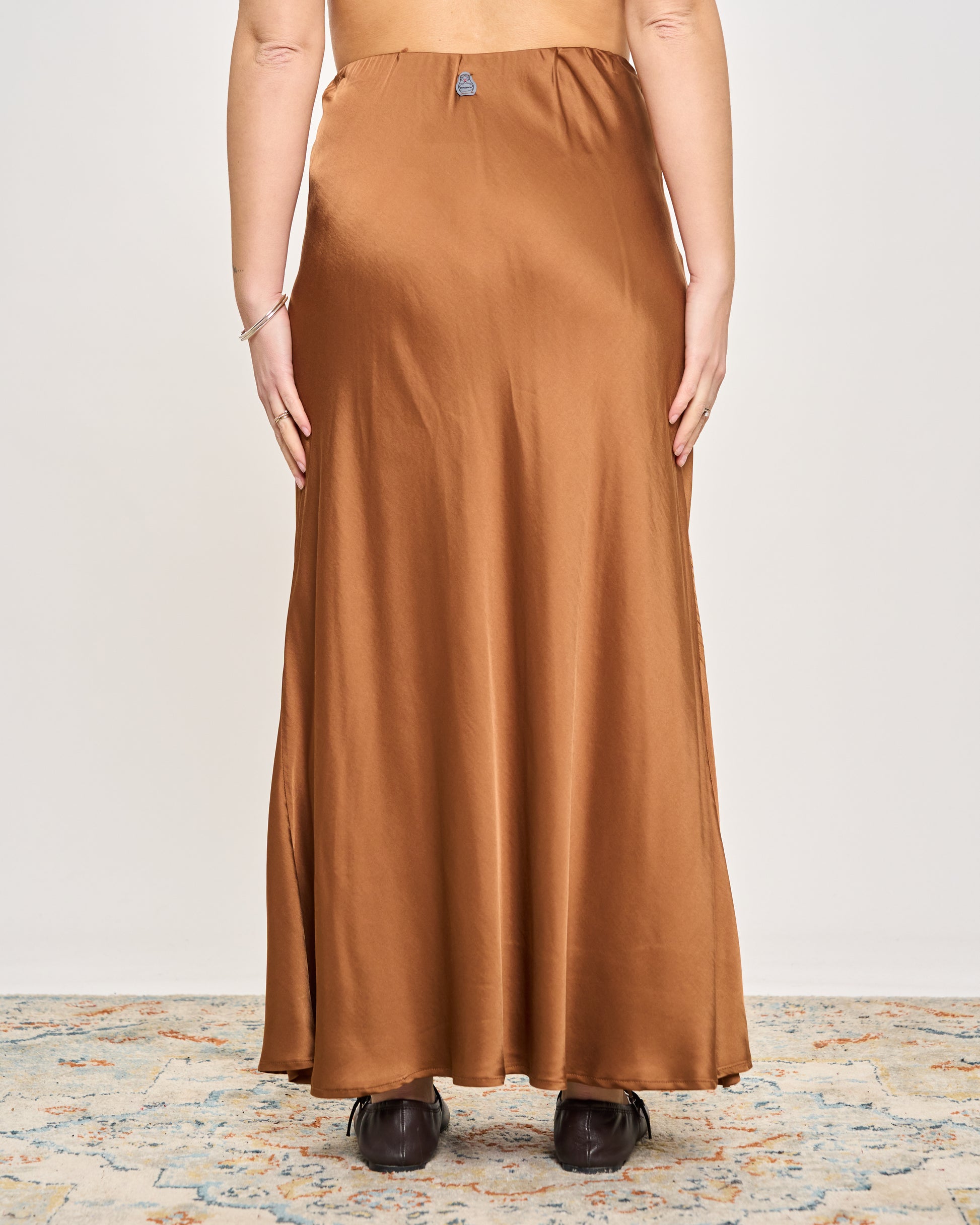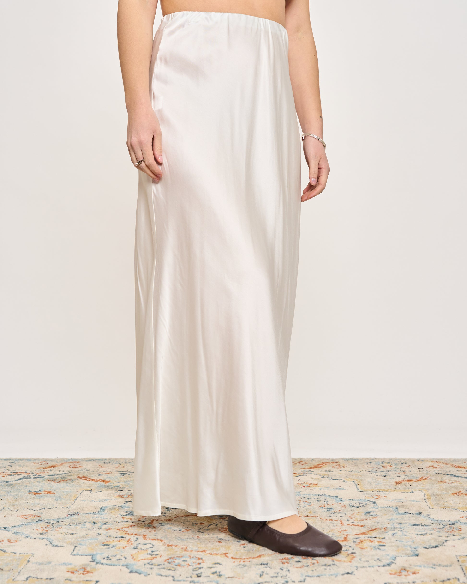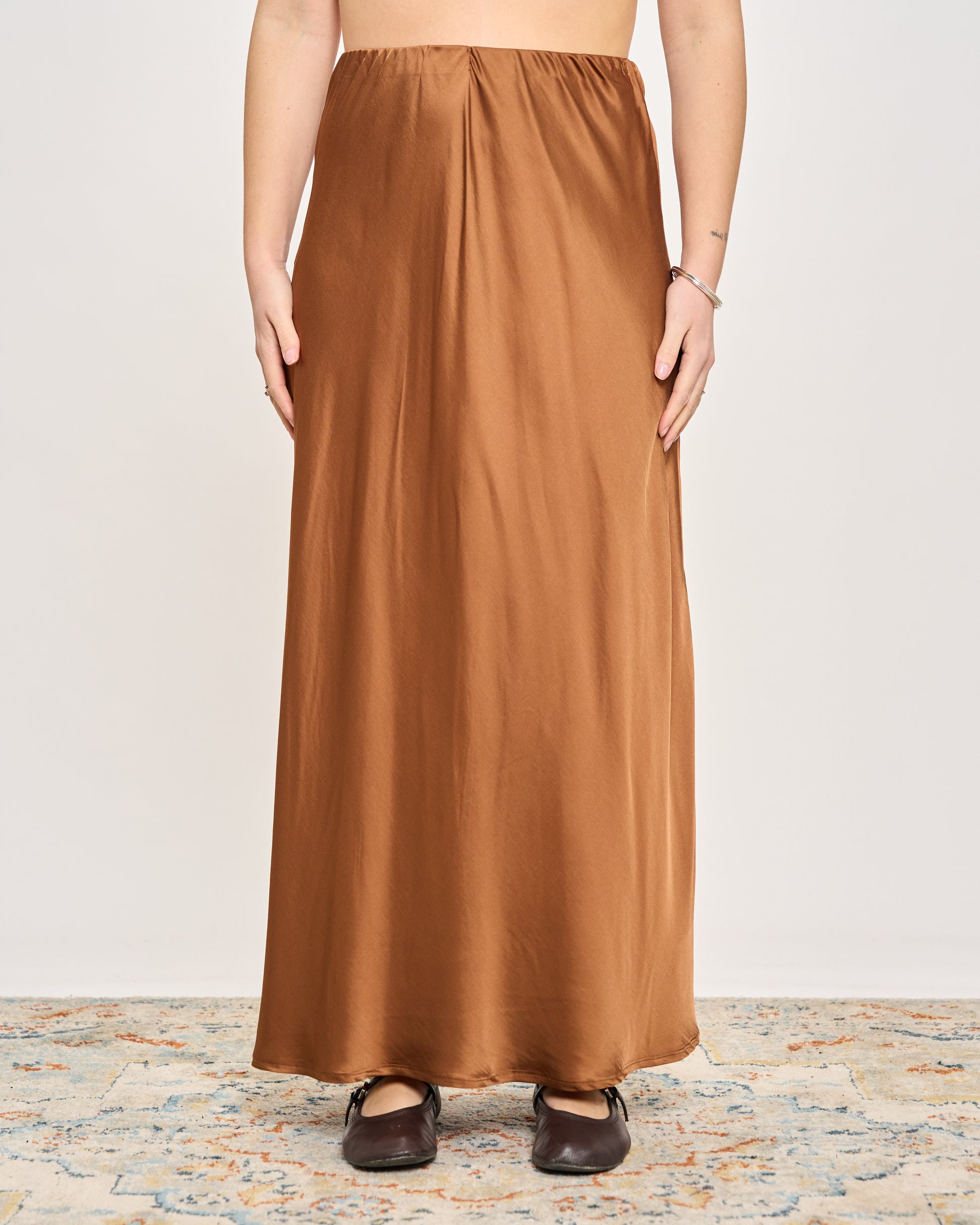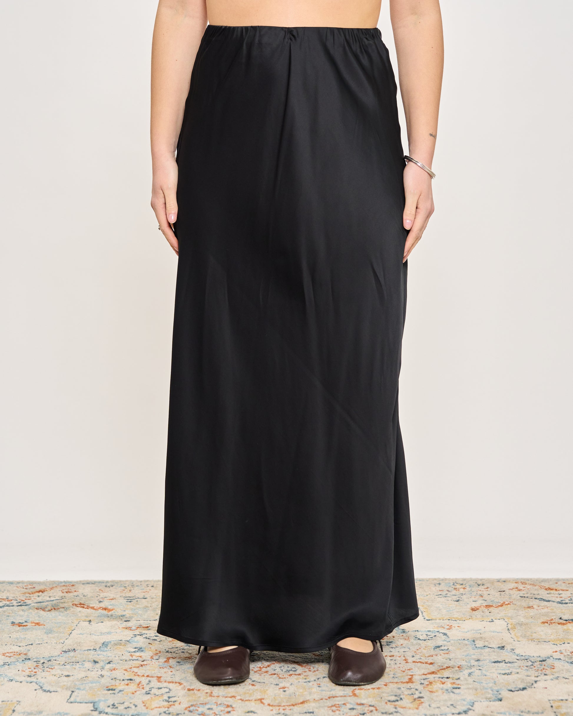 Gonna in raso di viscosa con elastico in vita e orlo sul fondo.