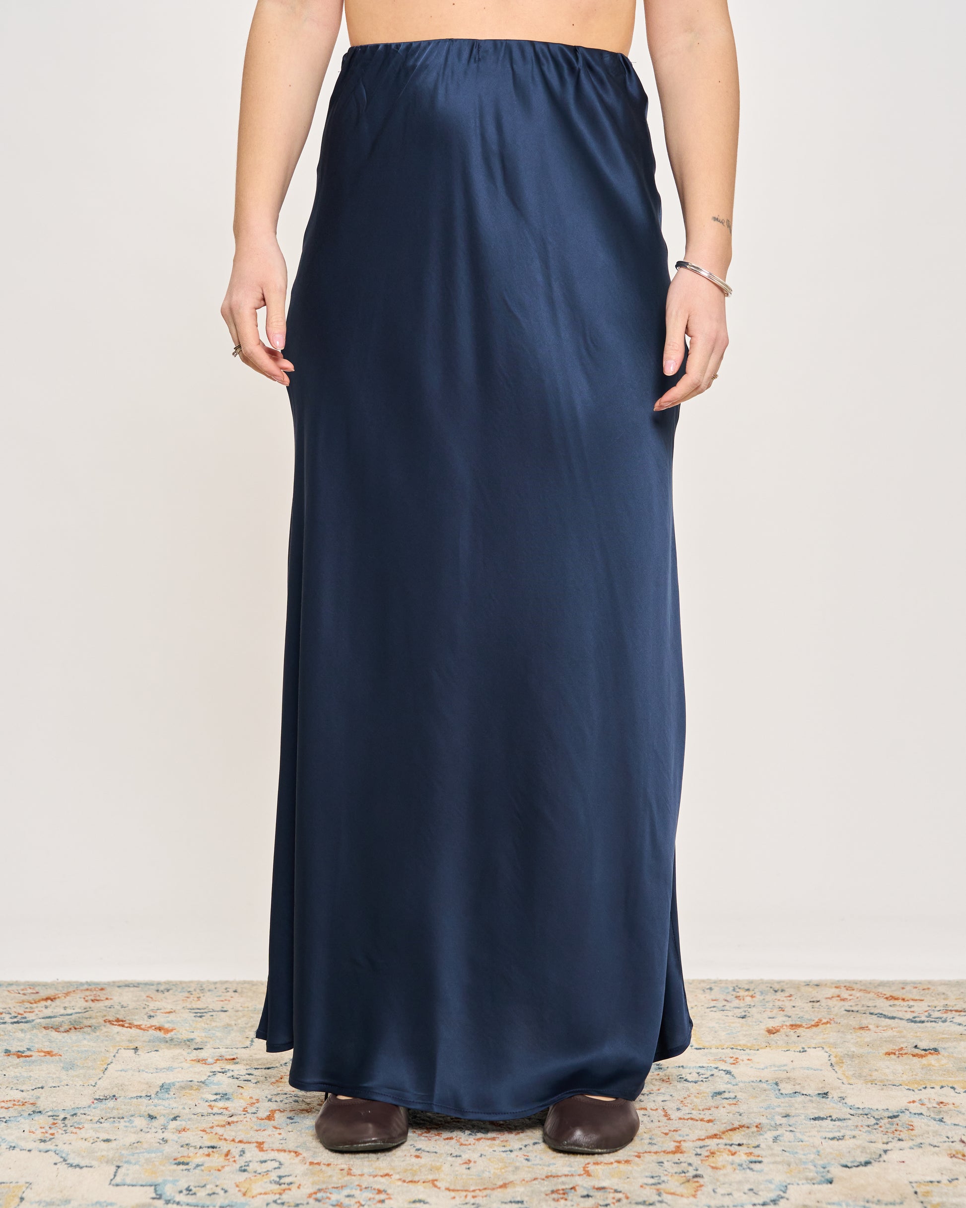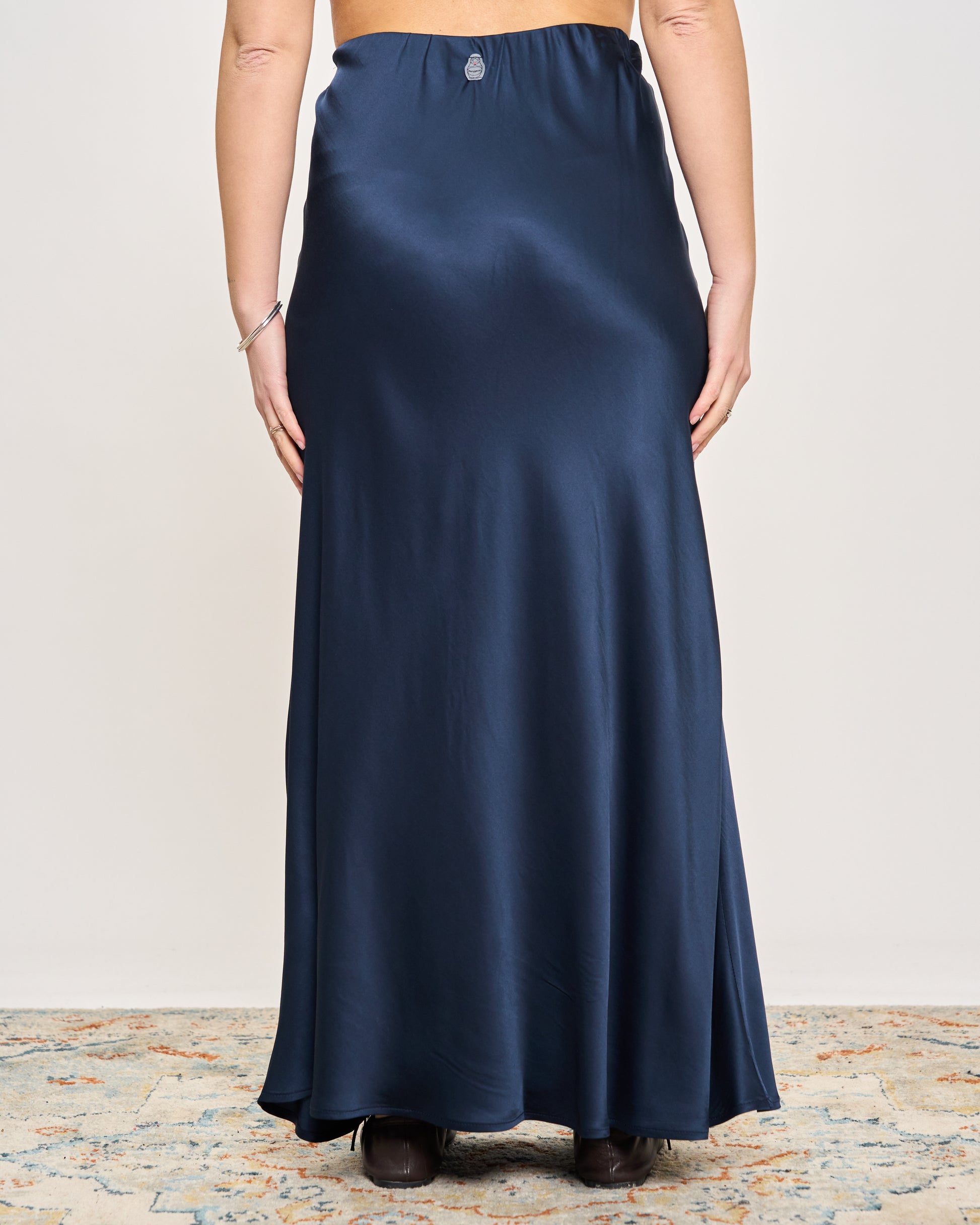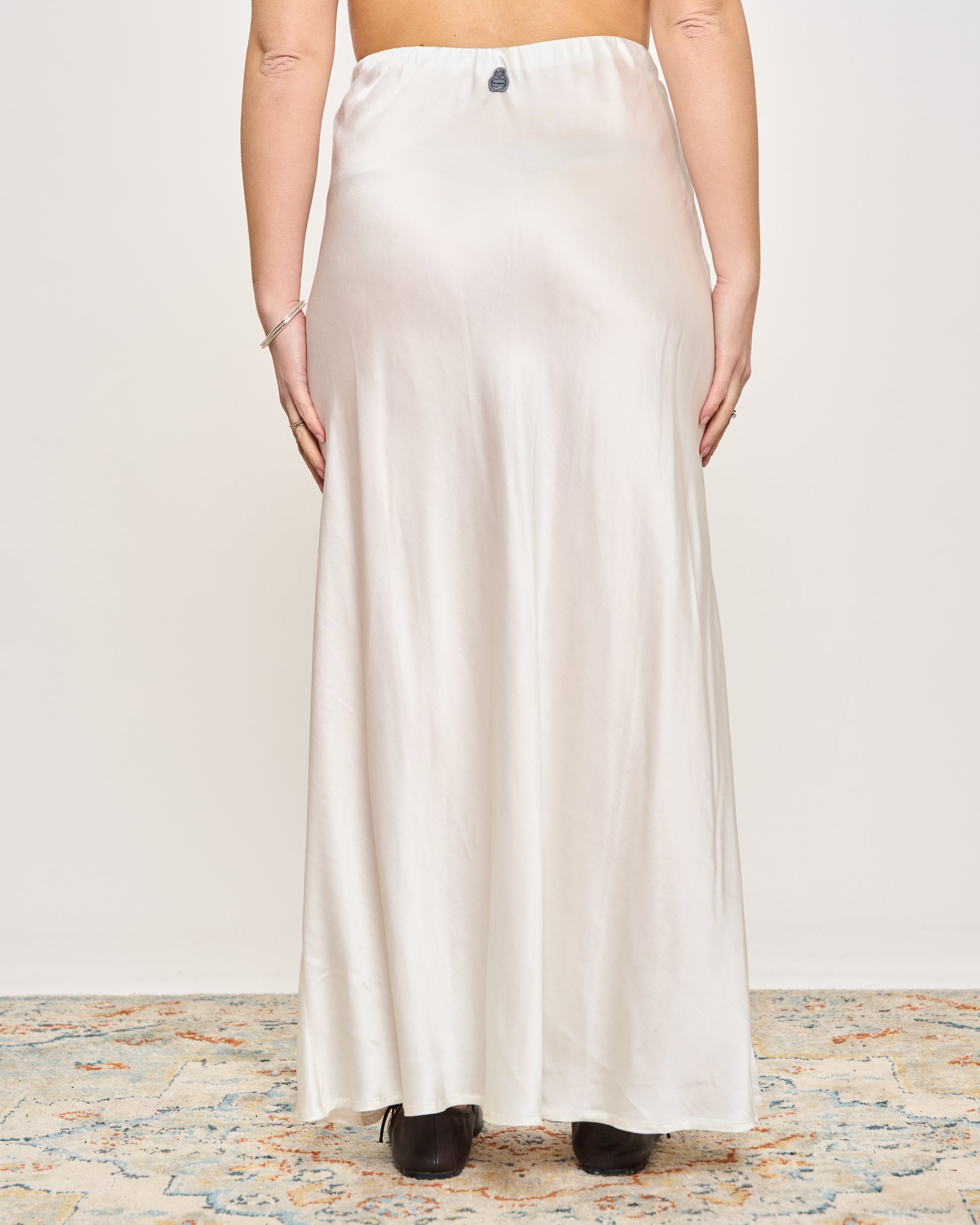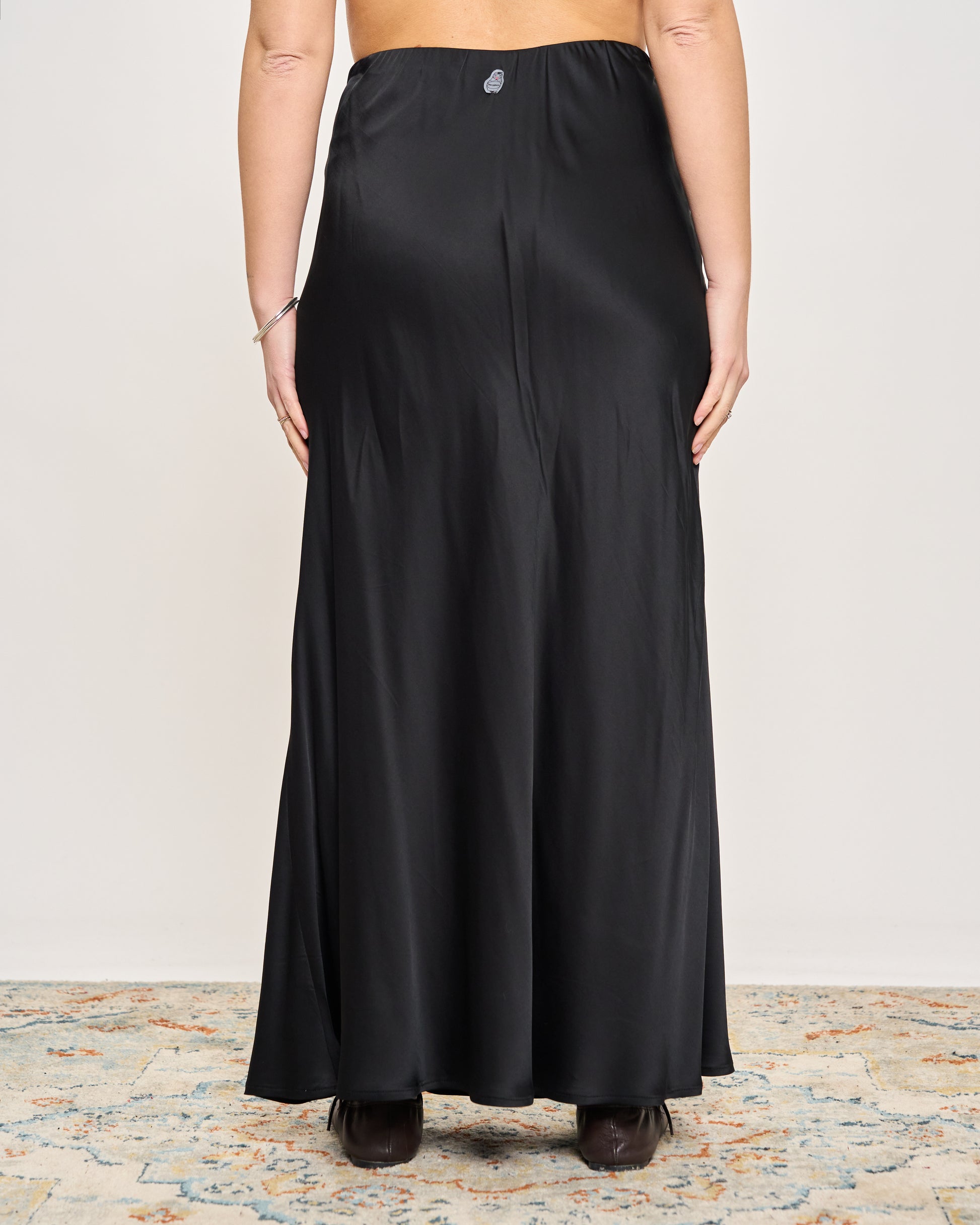 Gonna in raso di viscosa con elastico in vita e orlo sul fondo.