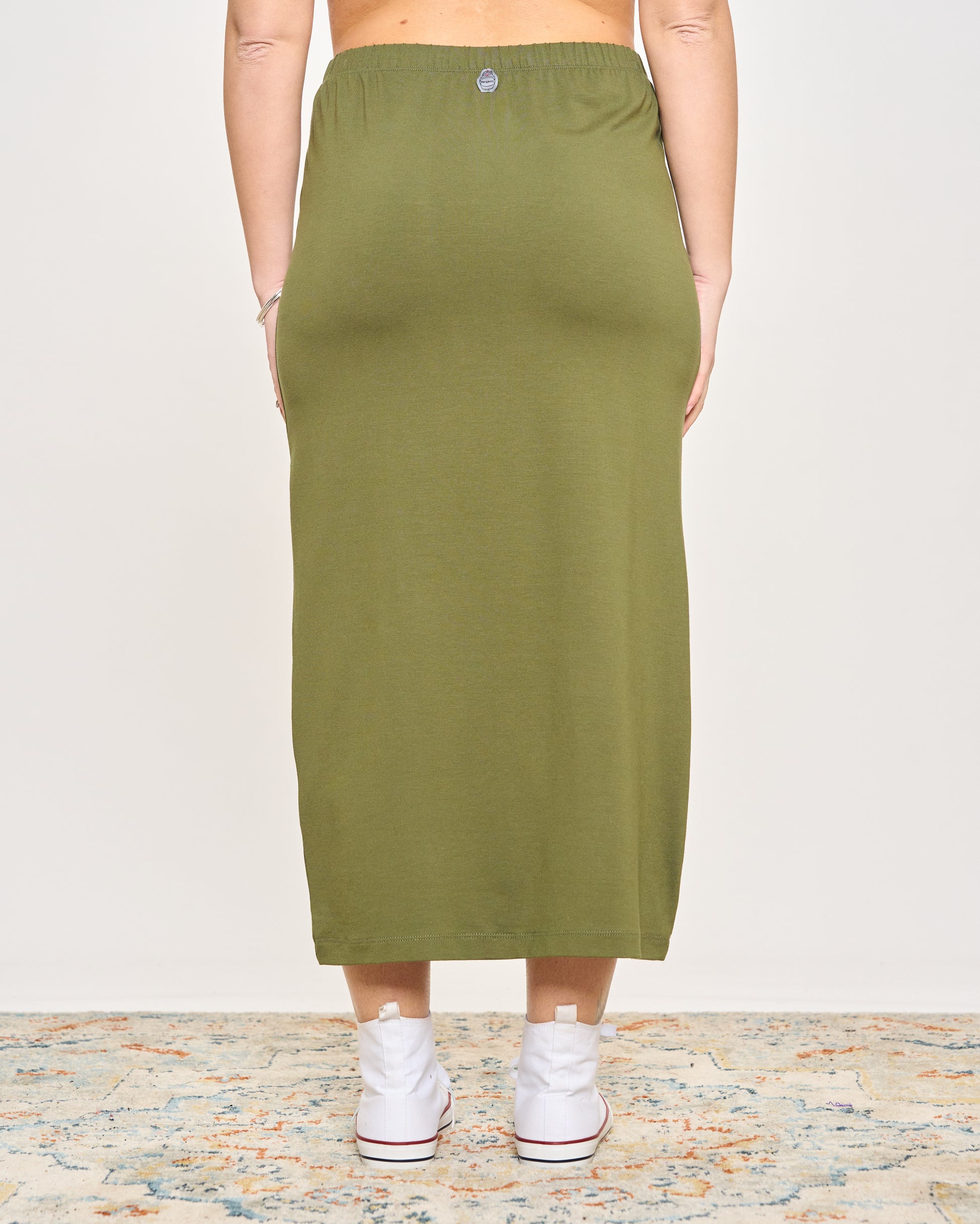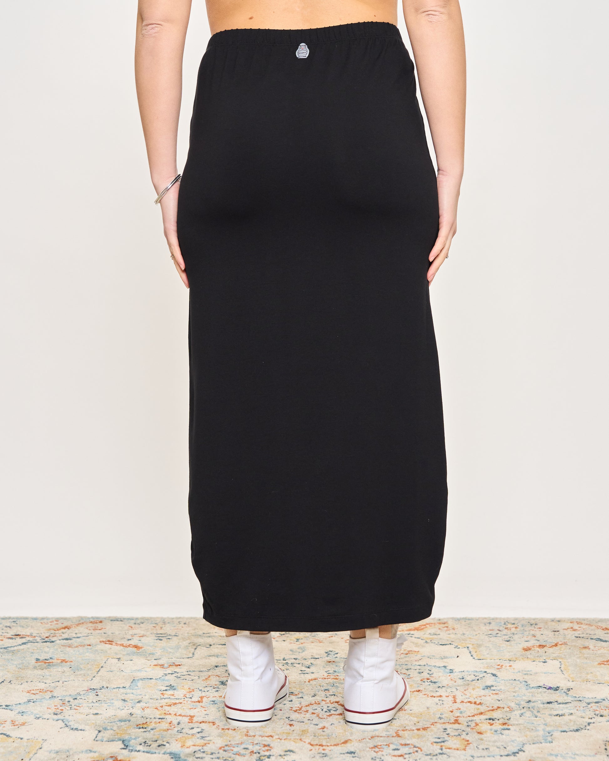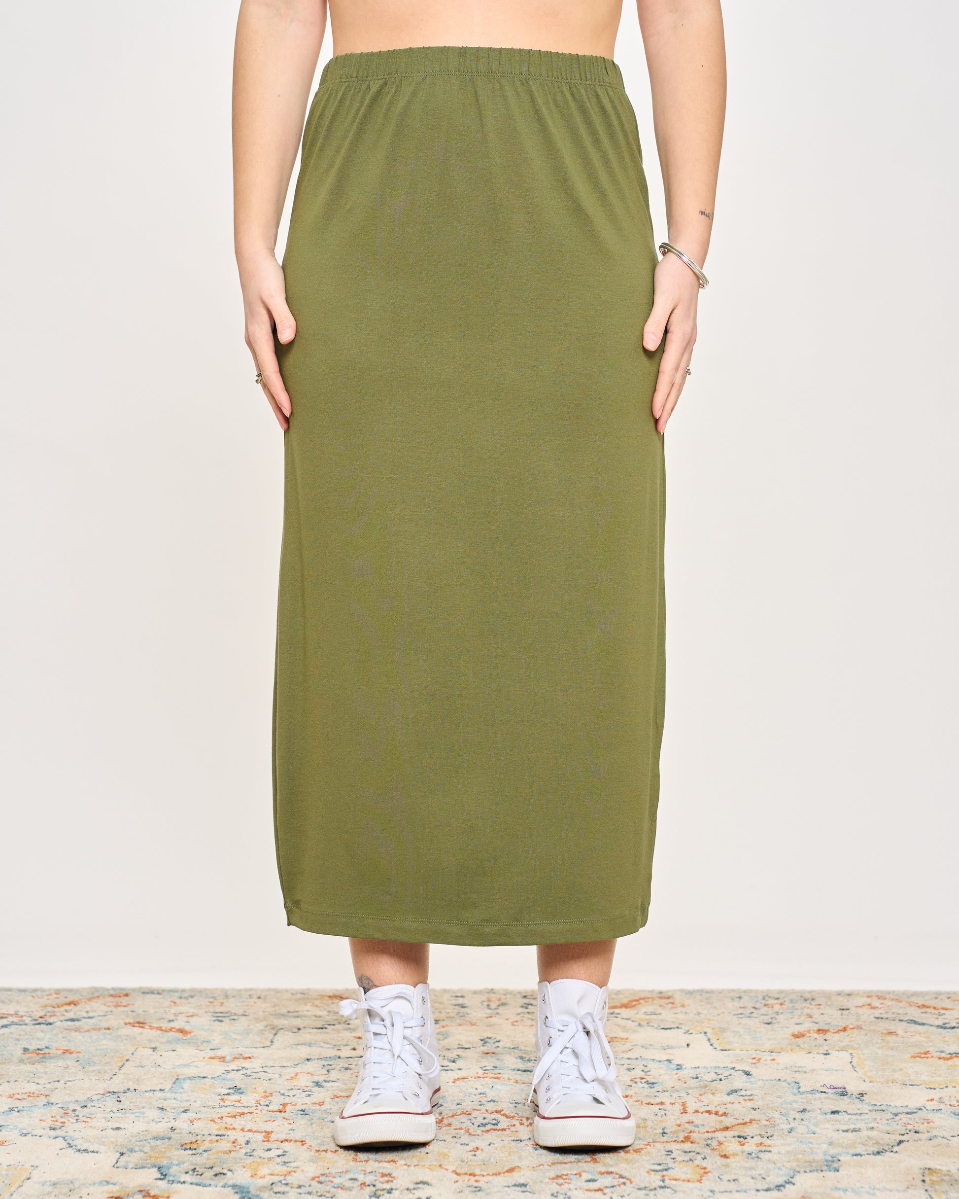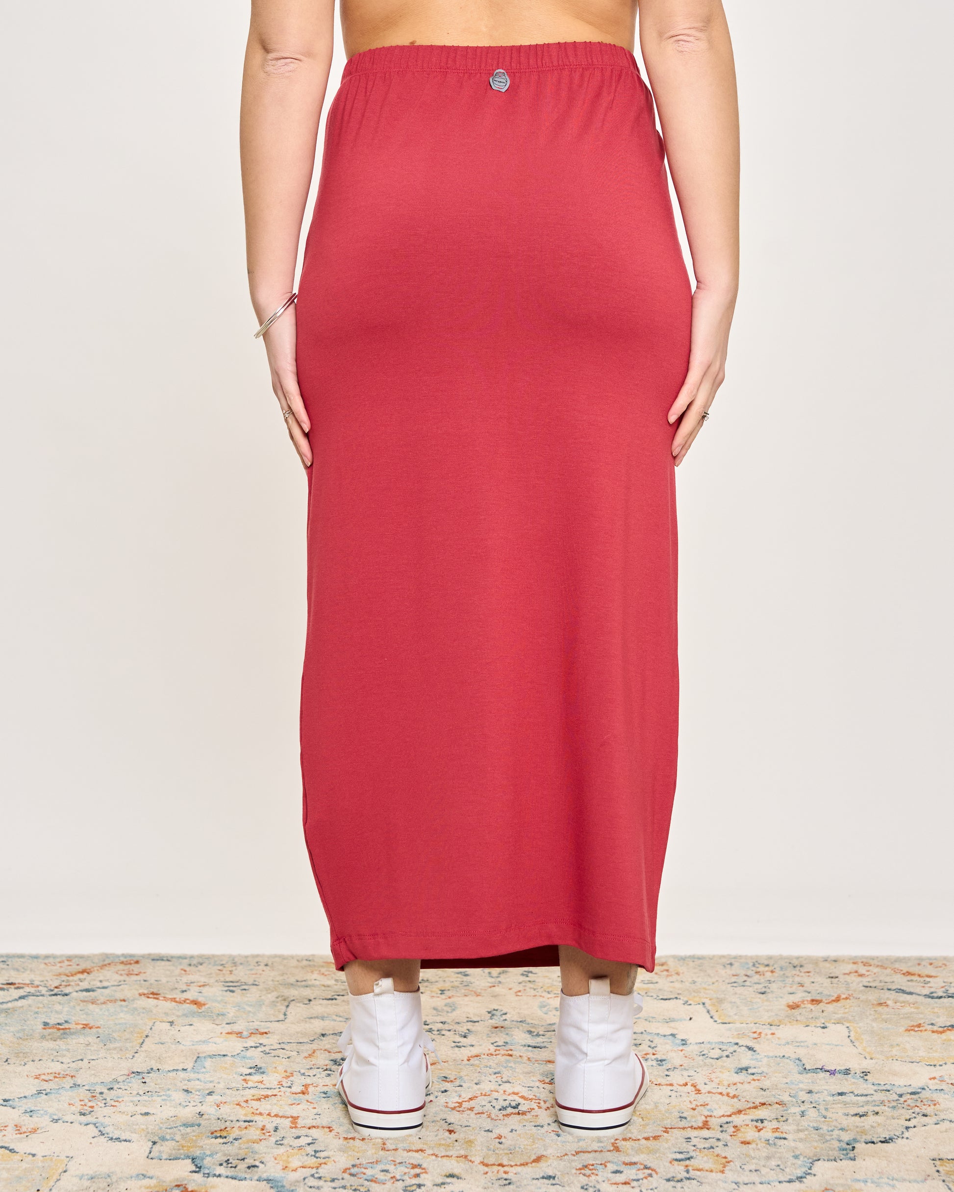 Gonna tubino in viscosa elasticizzata con elastico in vita.