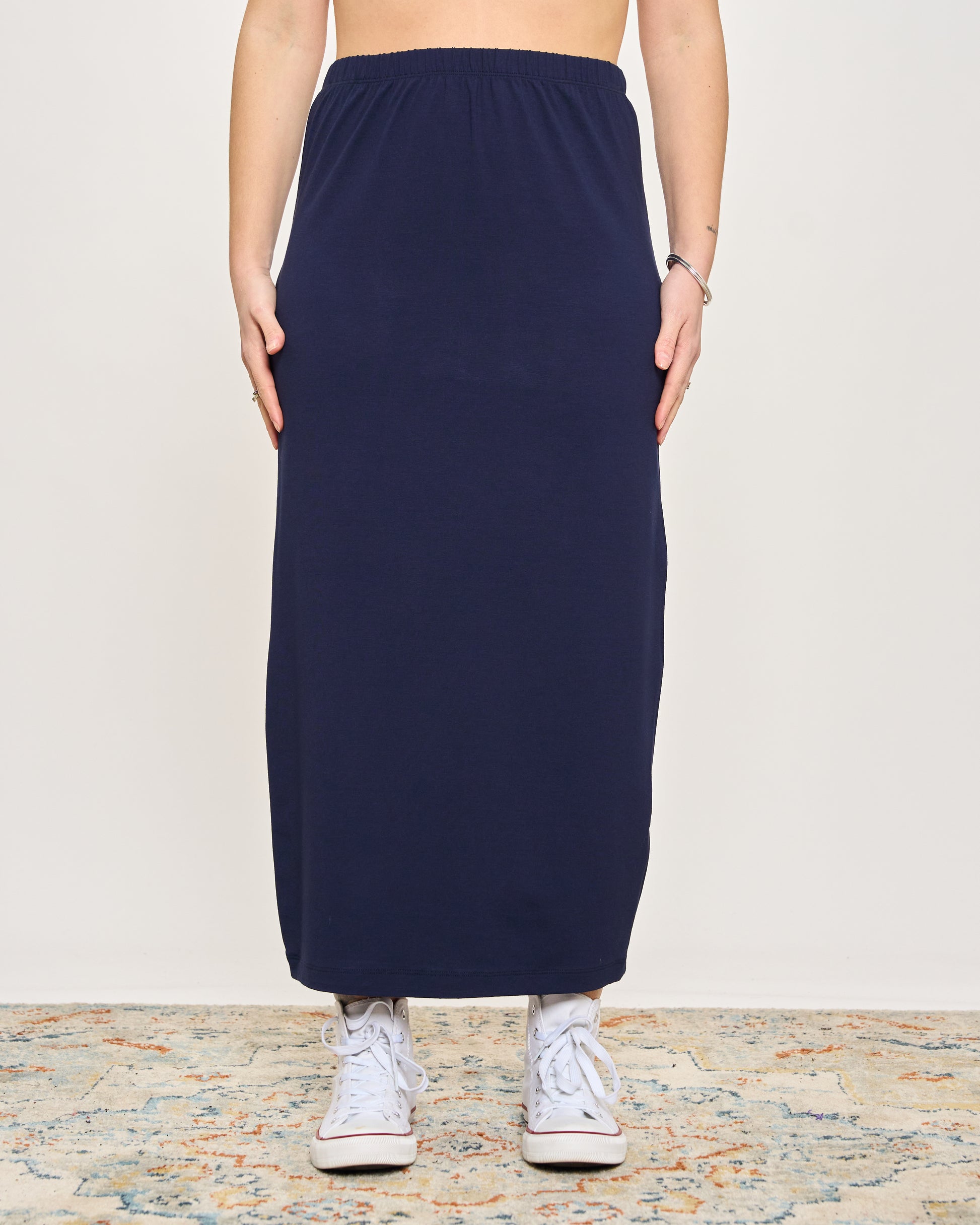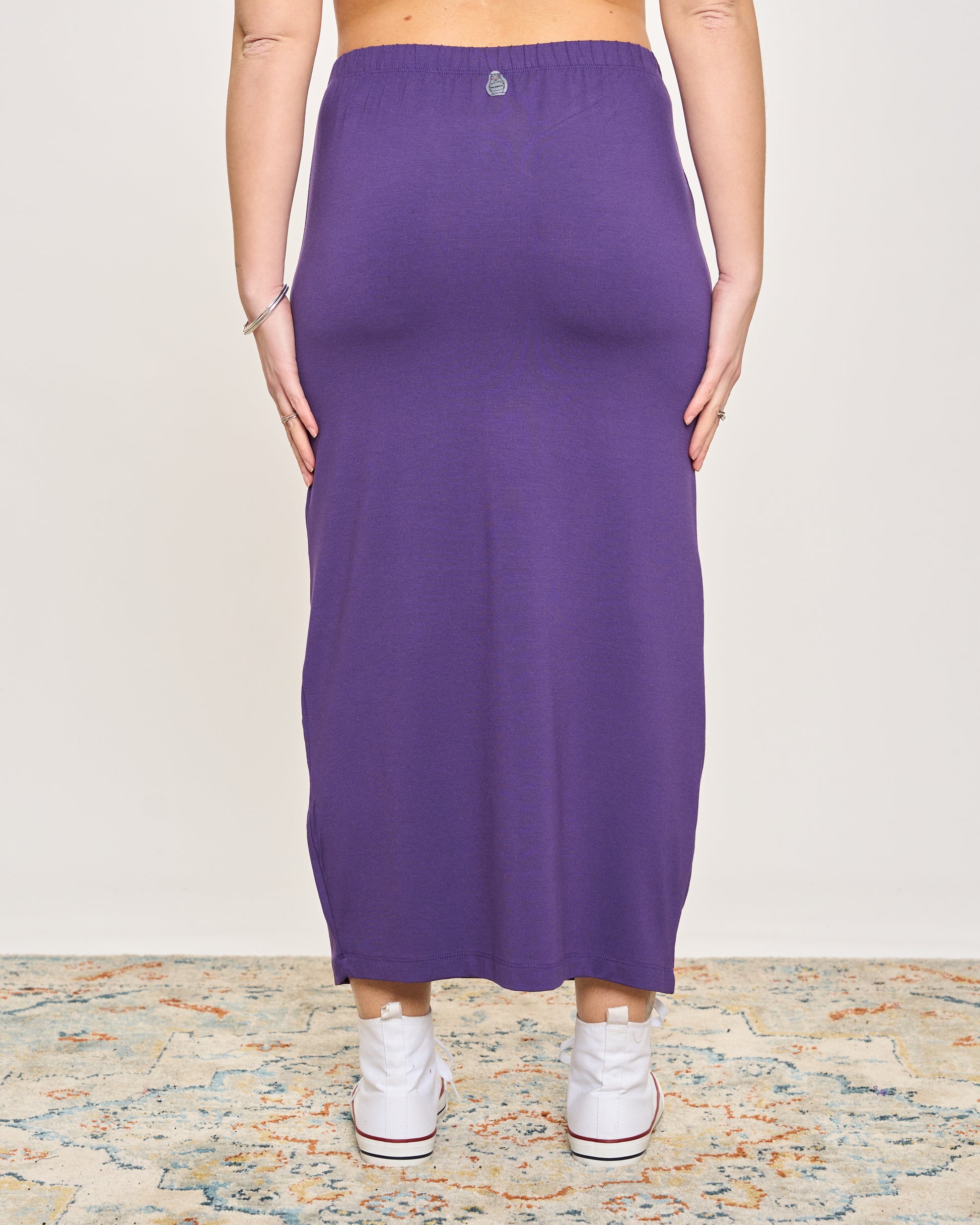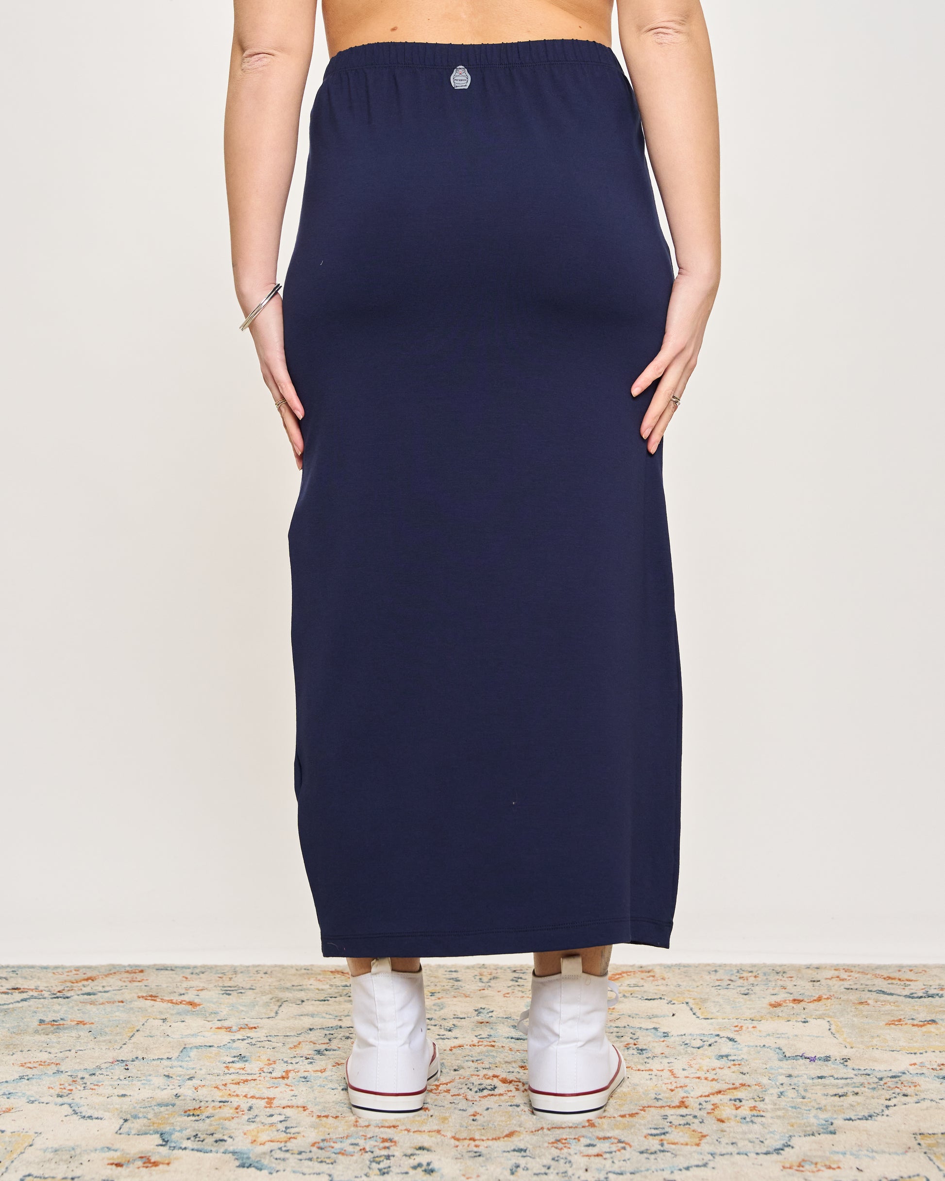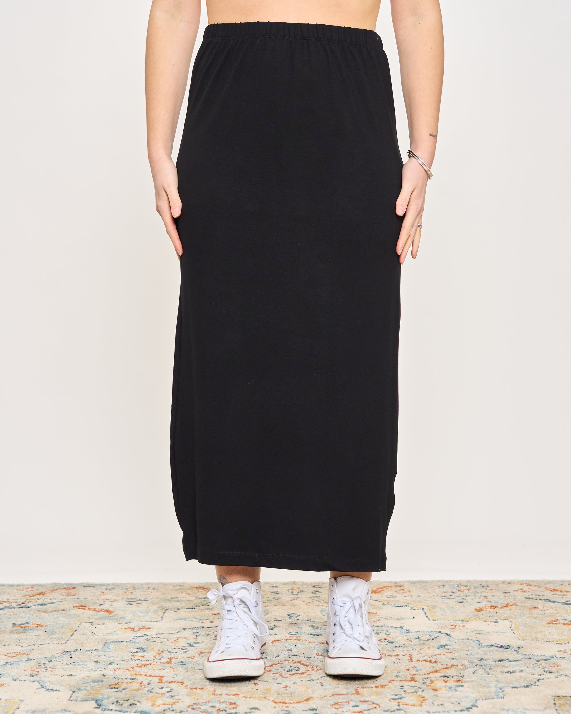 Gonna tubino in viscosa elasticizzata con elastico in vita.