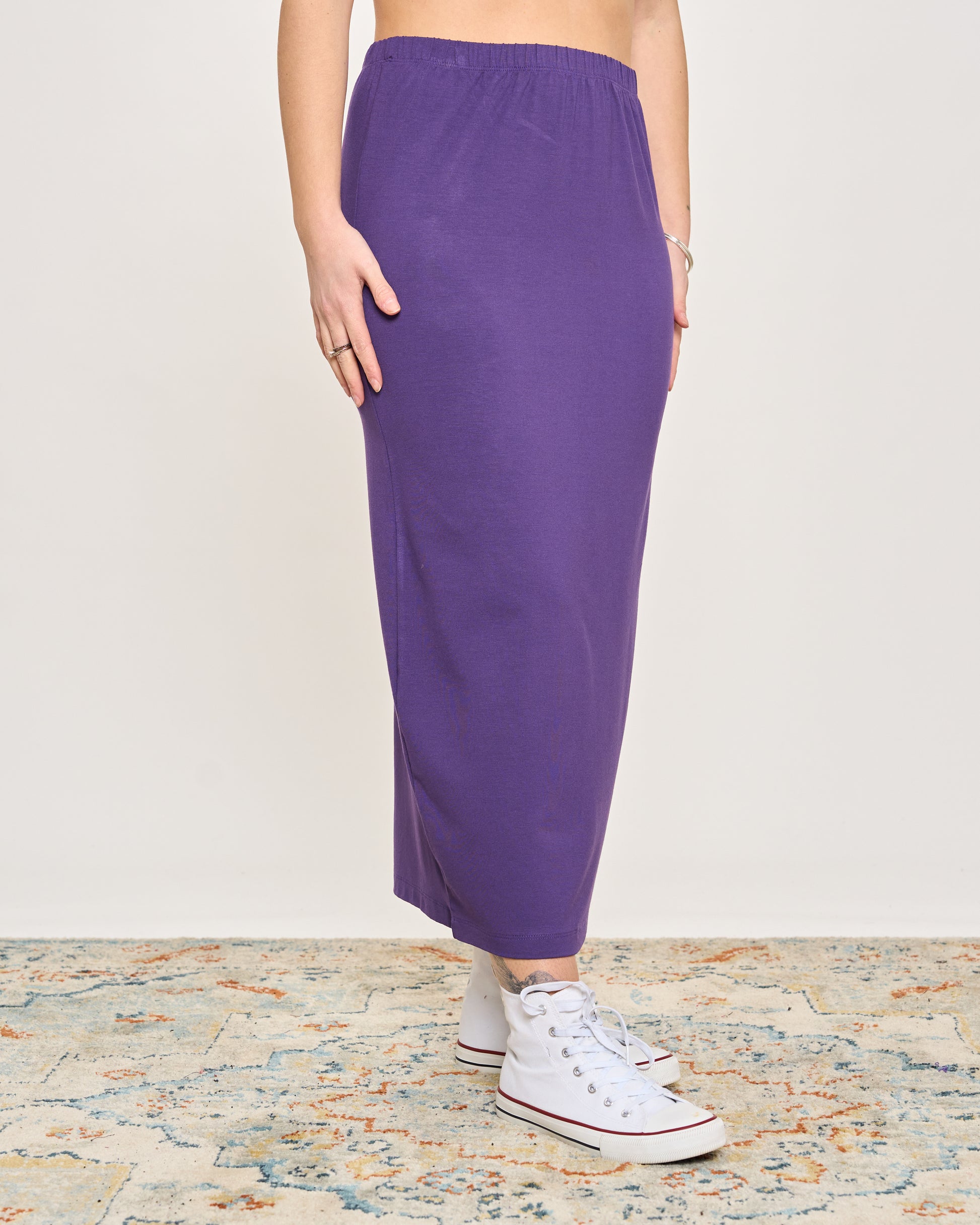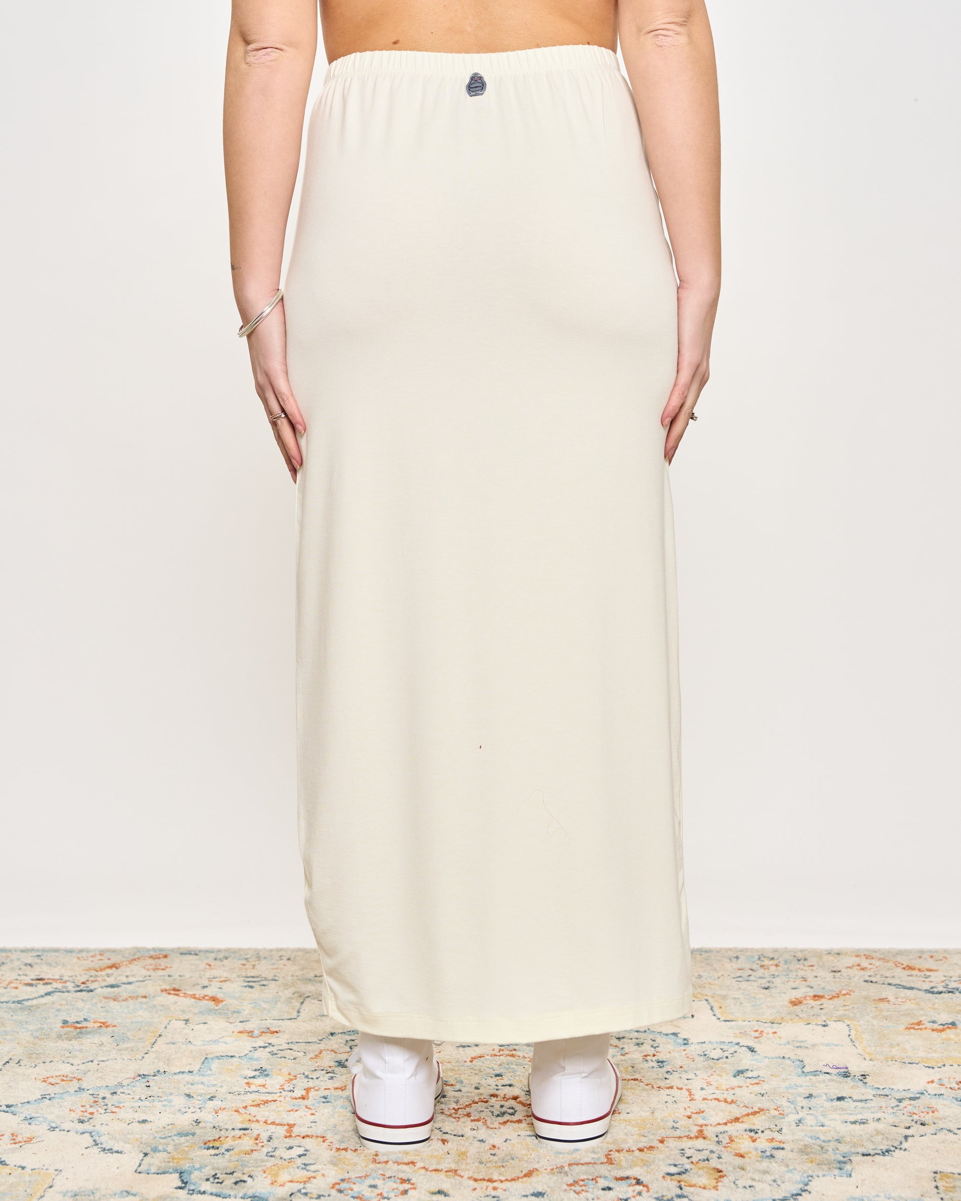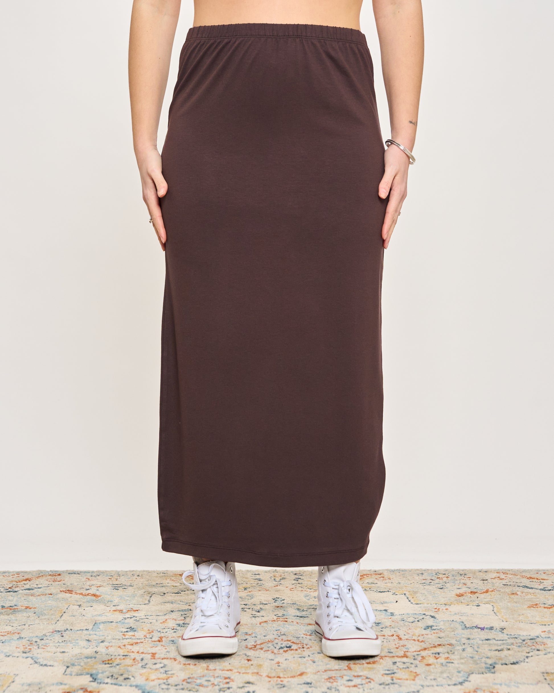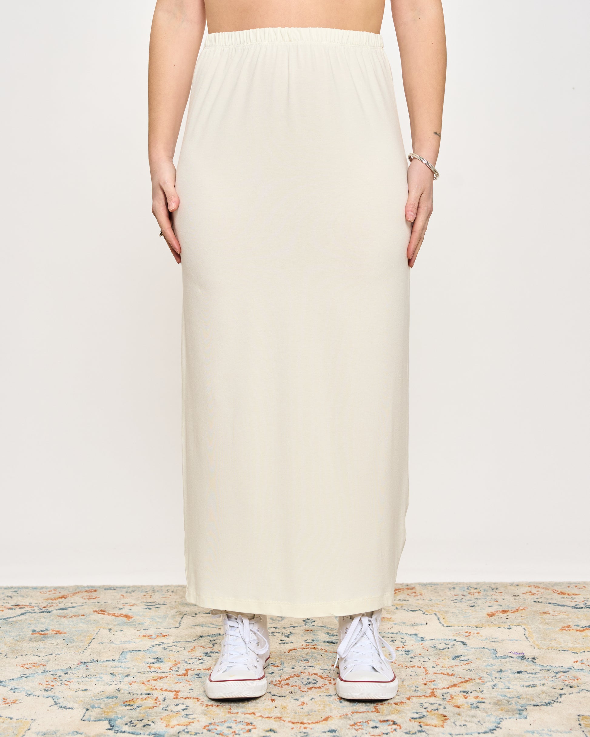 Gonna tubino in viscosa elasticizzata con elastico in vita.