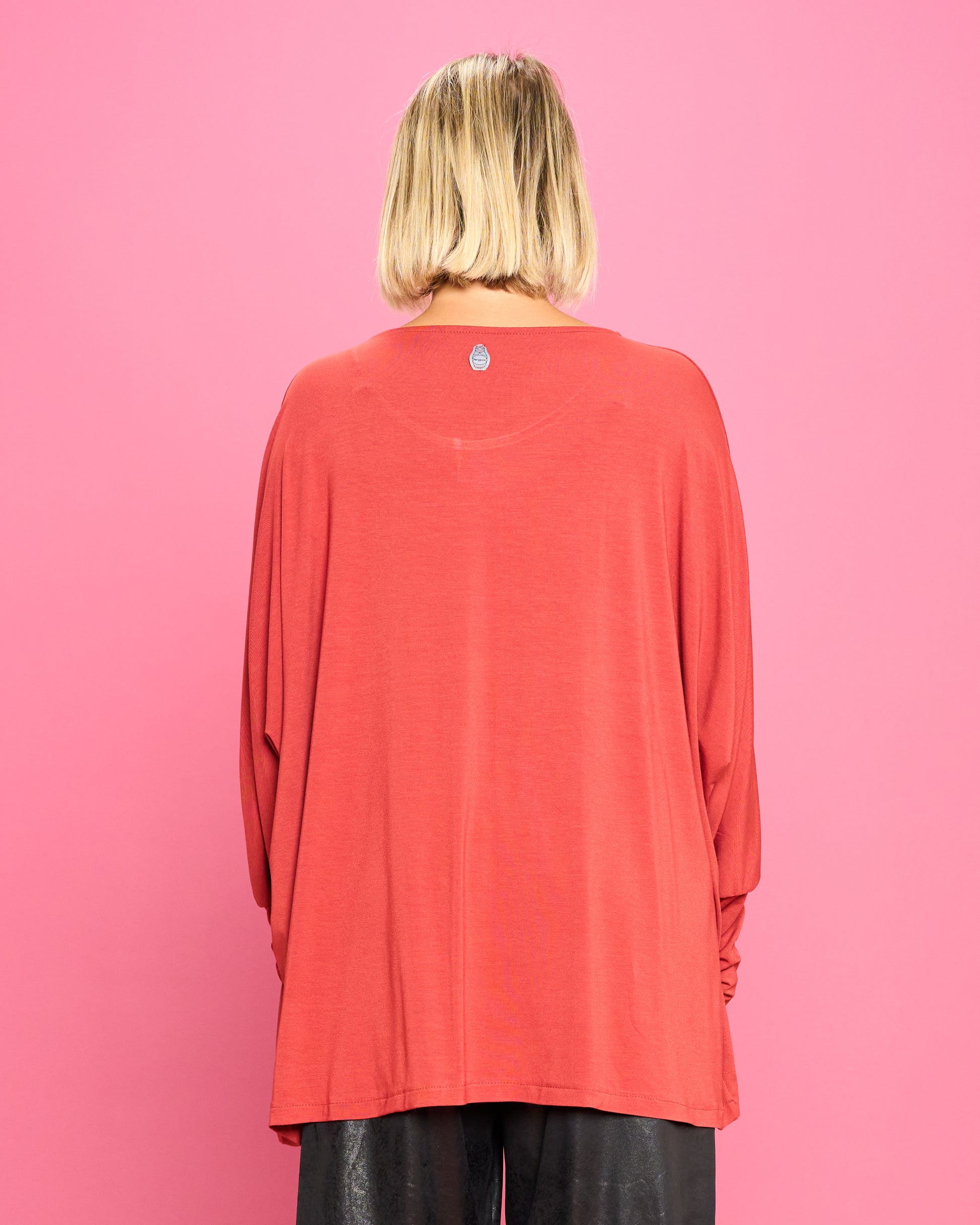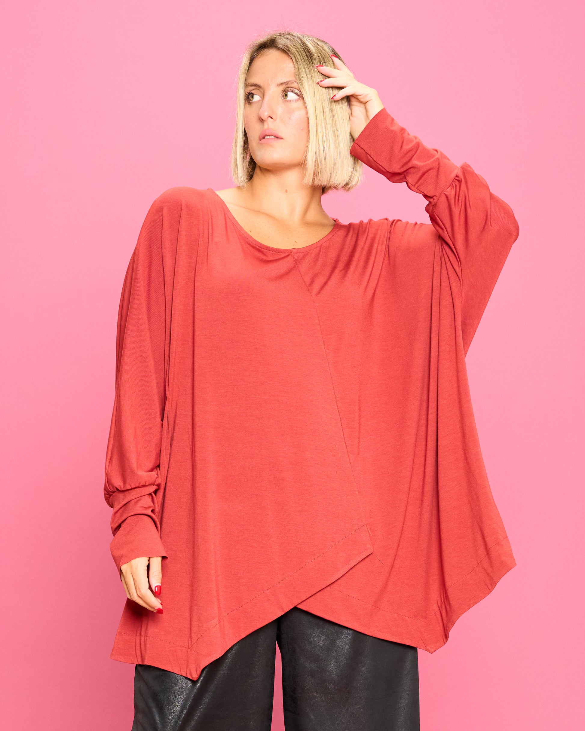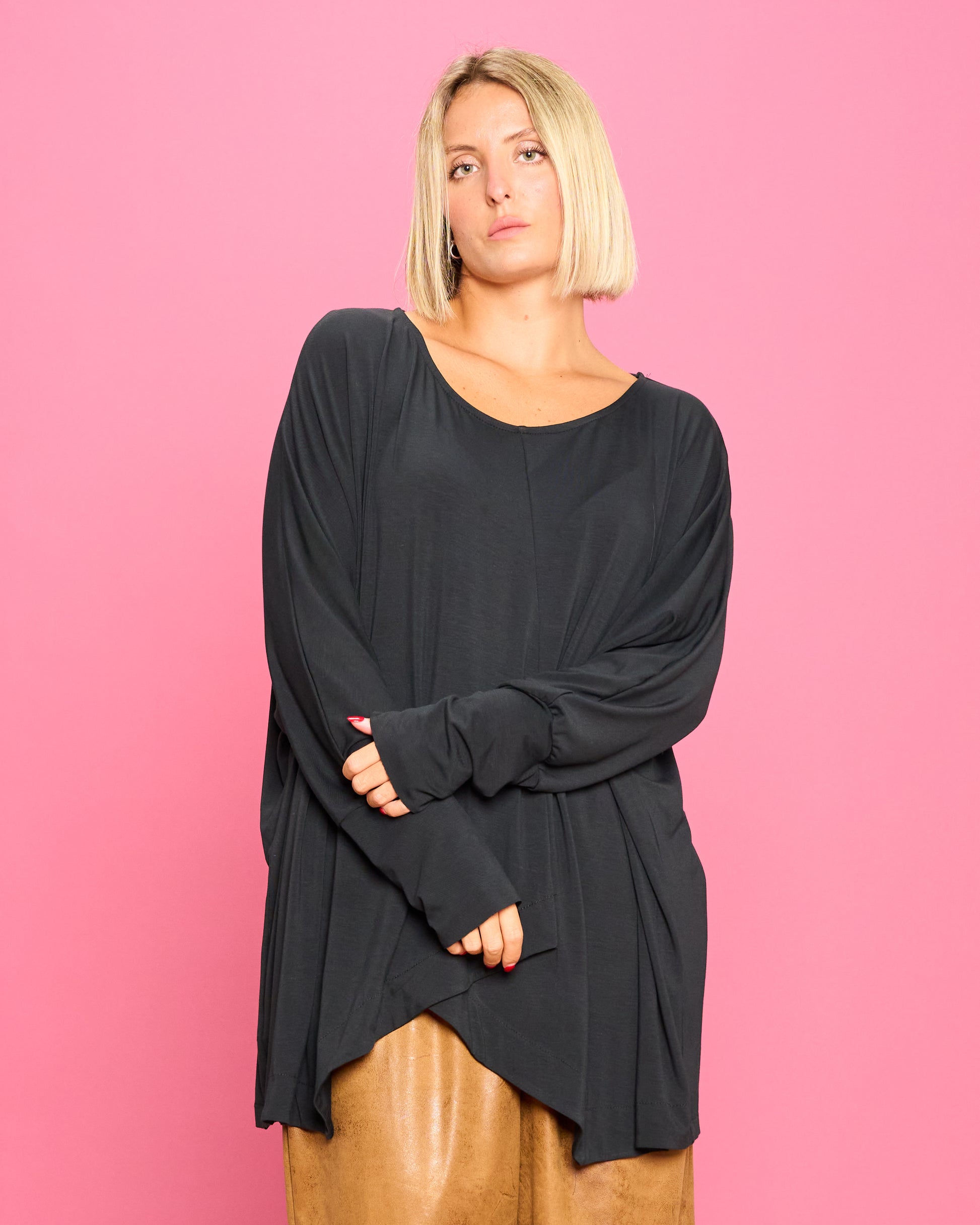 Maglia over con orlo diagonale sul davanti e maniche a scatola.