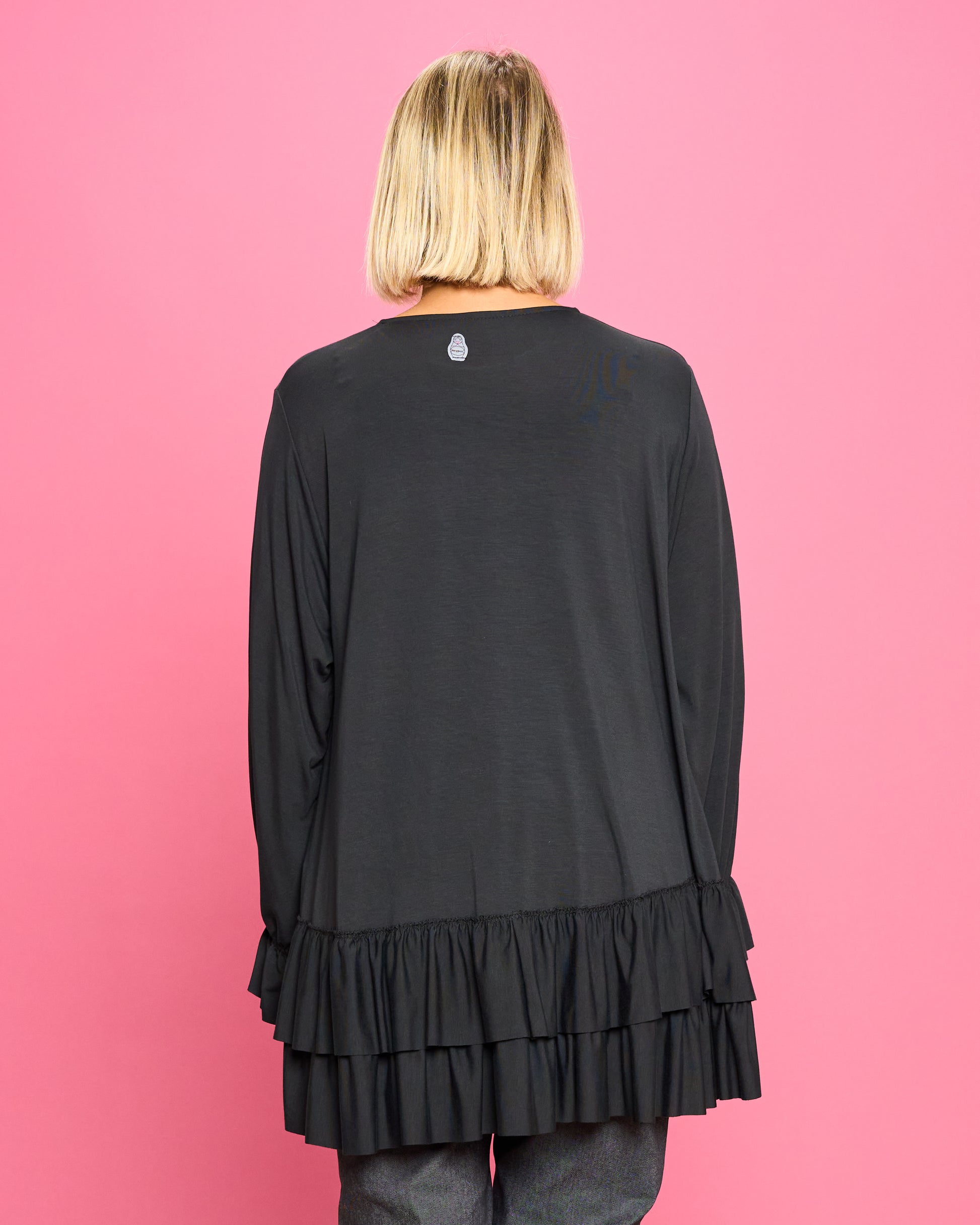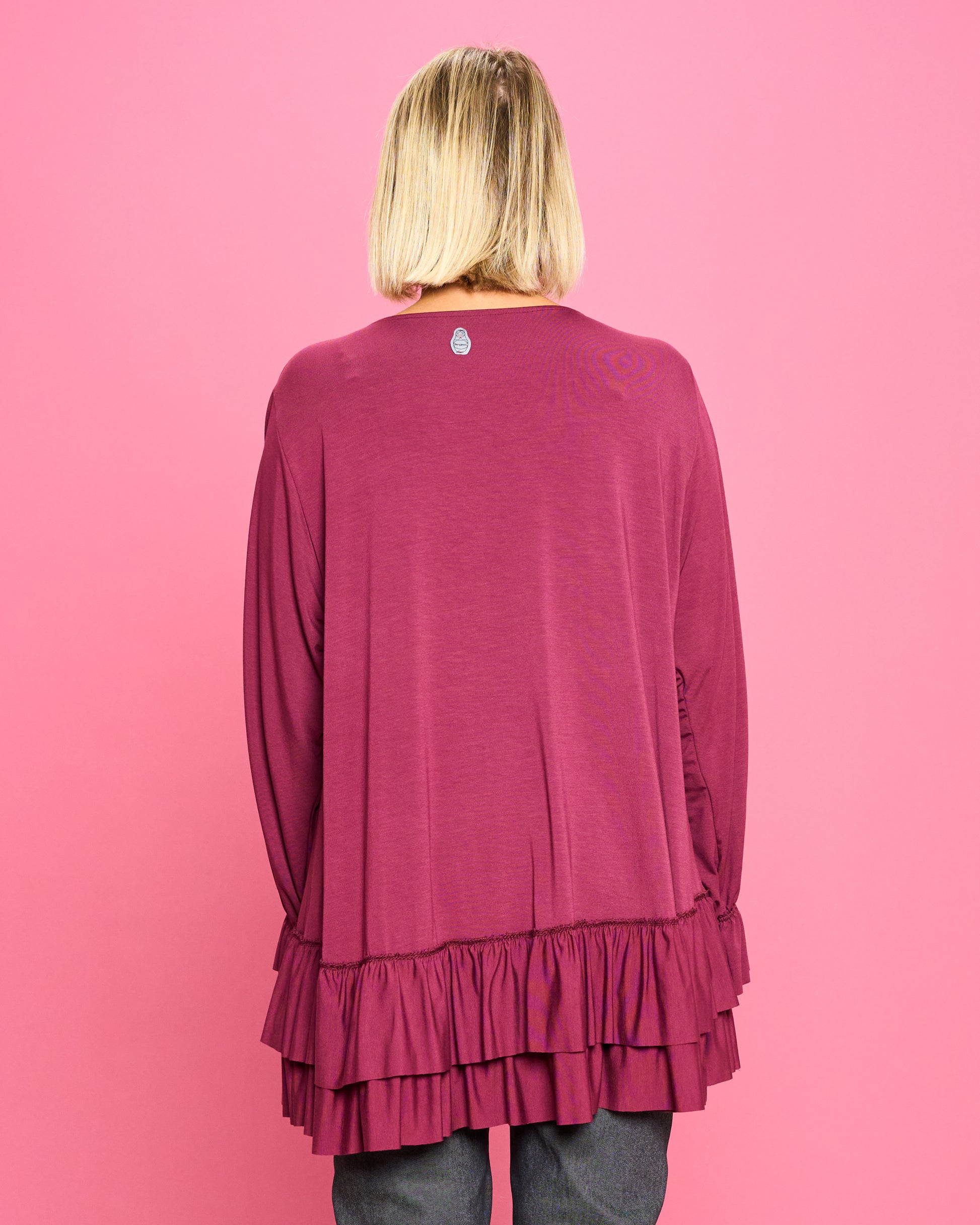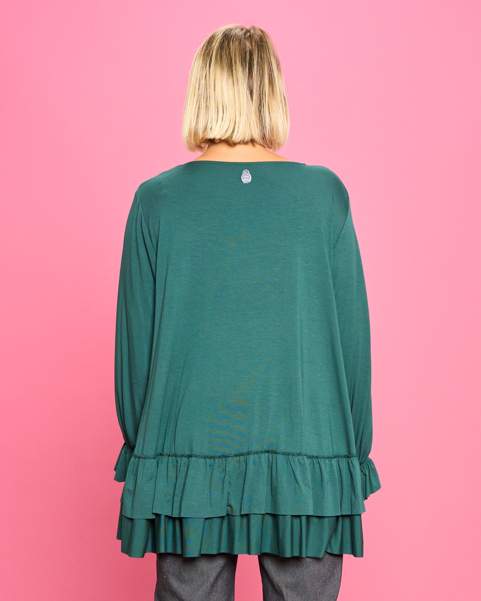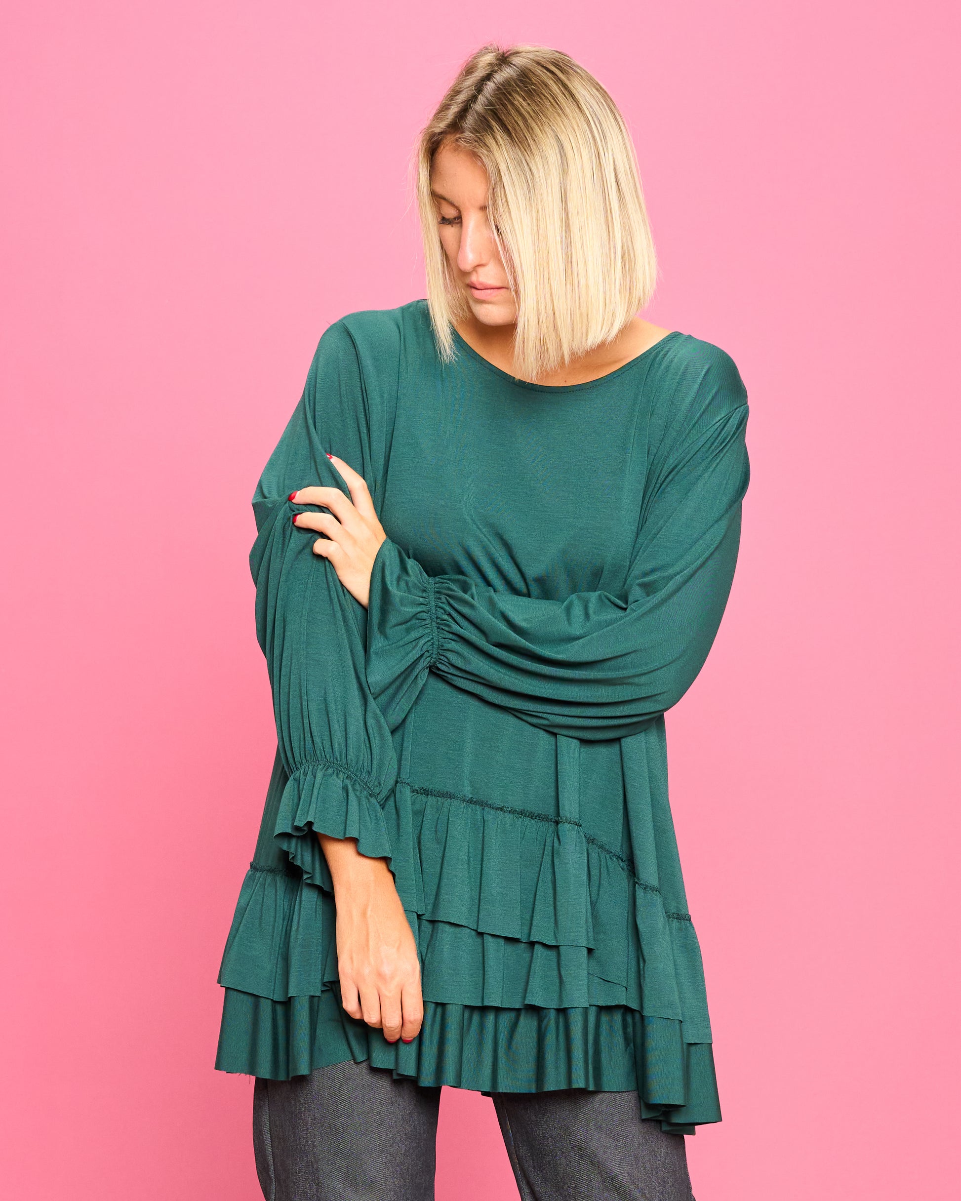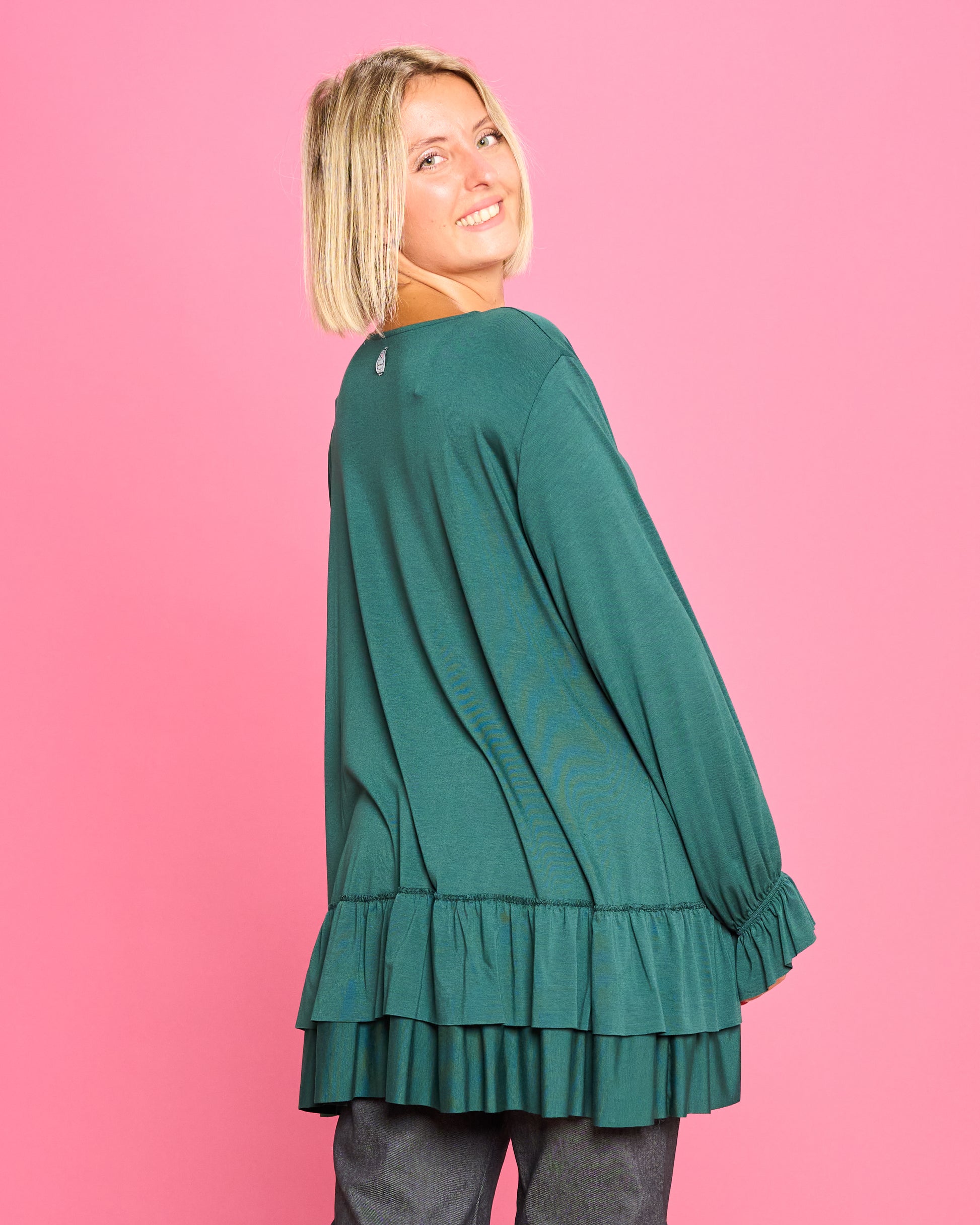Maximaglia in viscosa con manica raglan e doppia gala sul fondo.