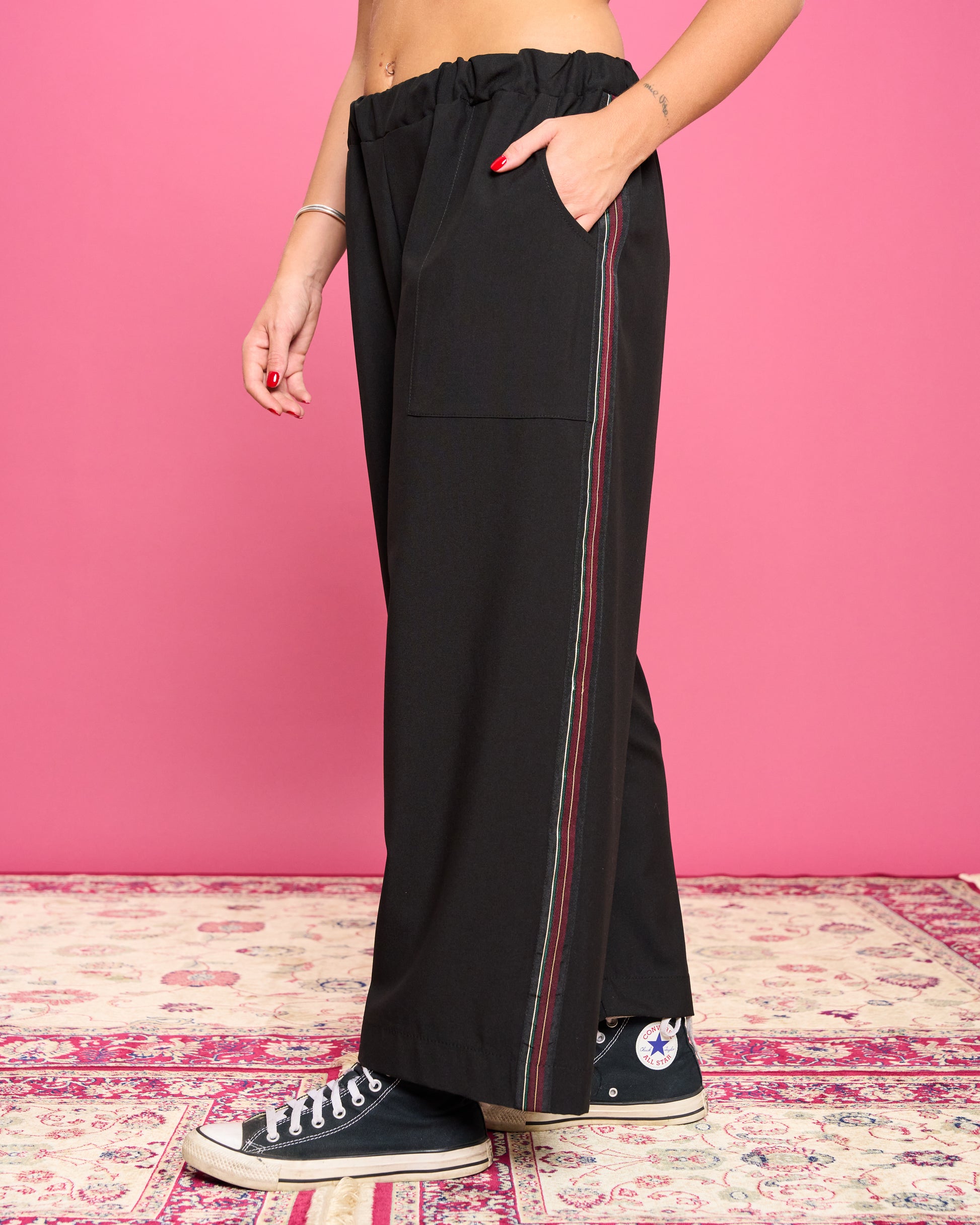 Pantaloni in misto viscosa con tasche a toppa, nastro di grosgrain sui lati ed elastico in vita